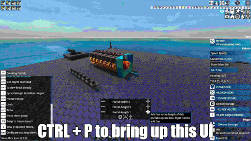 In terms of propulsion changes; Dedi-blades are now more powerful when the blades are further away from the centre axis. This reflects the increased area of air swept Helium pumps are now more powerful. Both air and helium pumps have changed the way that they leak to be more realistic. Propellers now have a pitch adjustment so that they can be angled -15 to +15, so we can now “counter” wheelies or nose dives if we place a number of props under the or over the centre of mass for forwards push. This may be added to all propulsion types in future. We have also created a patreon page and we have had two Patreon requests already which we have added to the game. We now have a slider that changes the clarity of the ocean depth you can see through. This can only be used if you have GPU ocean enabled. This slider is also available in the planet editor too. Spot the difference: The settings for these two screenies were clarity factor 10 first pic and 0 second pic. Set this to 1 for default settings. Our second Patreon request was to add gravity, drag, particle count and lifetime to the smoke generator for a more realistic smoke trail. Nick has also added a new laser fire piece Short Range Laser, which can deal very powerful short-range beams for bombing runs, interceptors or melee style constructs. The shorter the focus range is the higher the damage multiplier will be. 50m would have a x10 multiplier so you can indeed dish out quite a bit of damage! 300m is the max distance for this system, the multiplier would be x2.880665 which is still very good (imo) :D As many of you already know during this latest devtest we have finally got our hands on the epic Undo Redo feature by Weng :D So just in case you did not know, the Undo Redo feature is in stable!