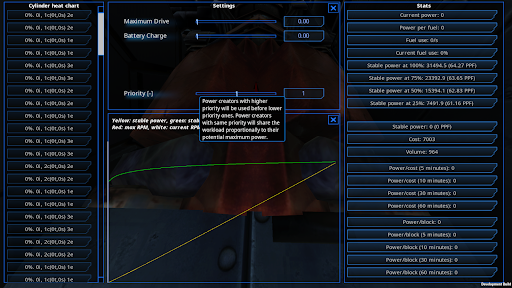Keeping on the topic of power distribution, we can now set up priorities on our power generators. As you can see with the snippet above, we can set the power priority of that steam setup and with the fuel engine pic below as well as electric engines.