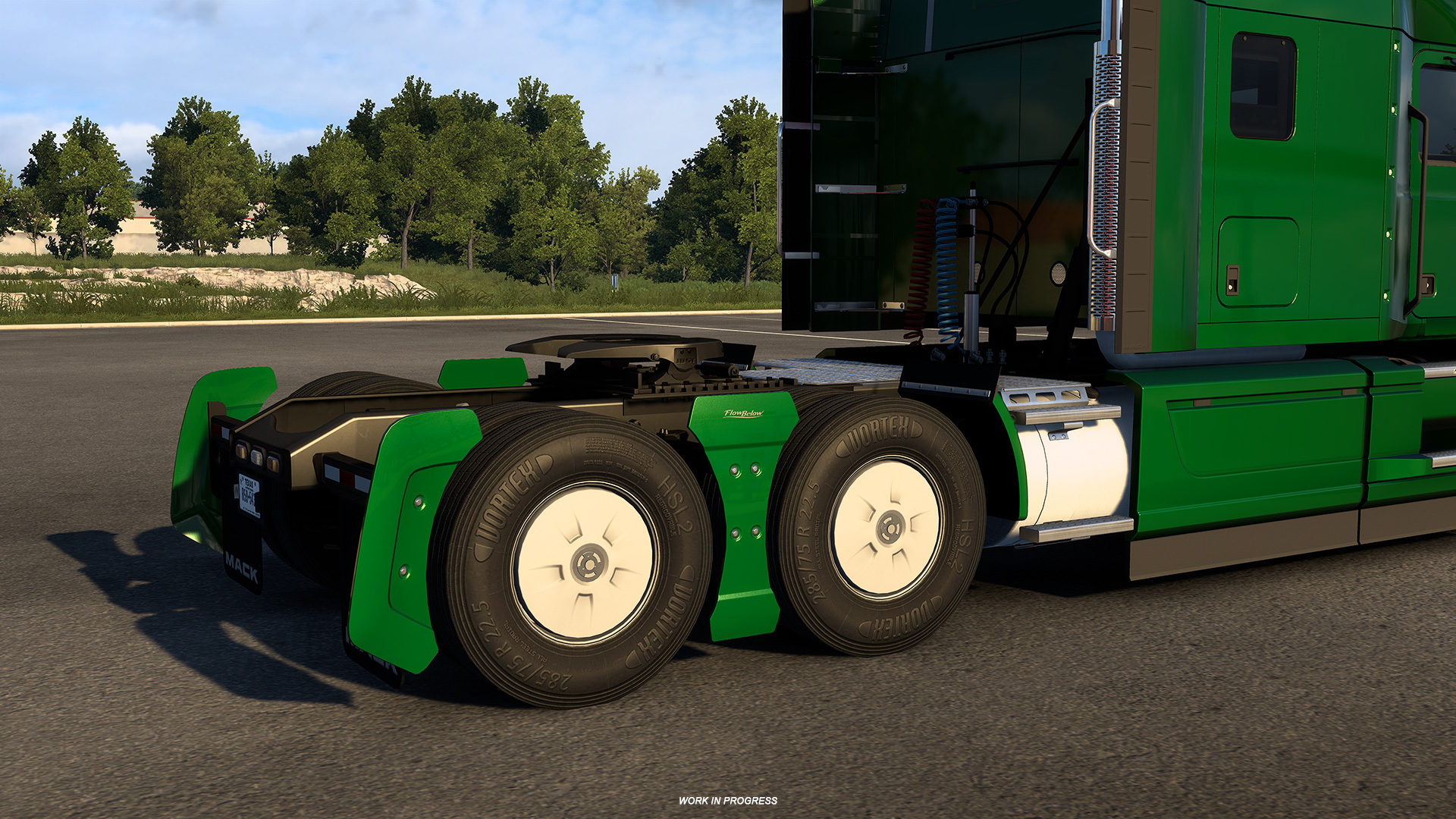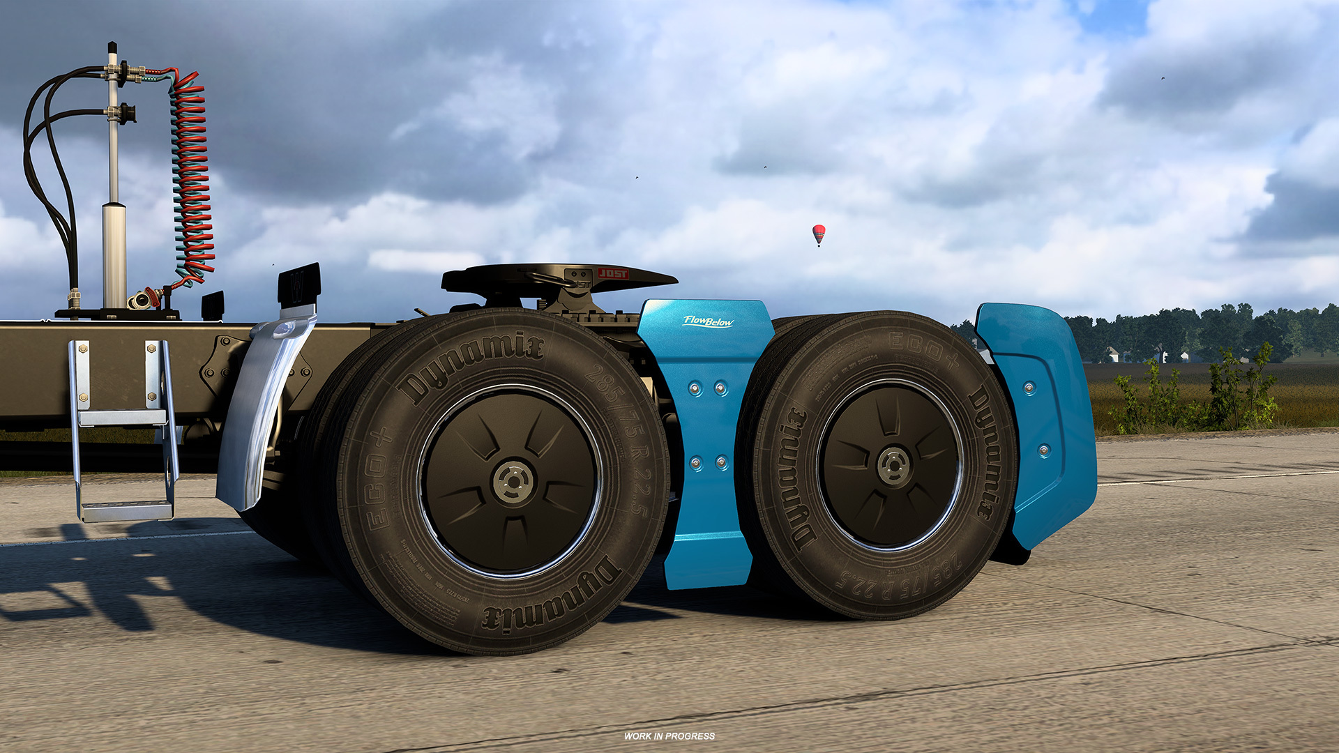 FlowBelow Painted PartsWe're introducing a visual enhancement for select trucks featuring FlowBelow aerodynamic parts in American Truck Simulator. These drive wheel closeouts, designed to improve fuel efficiency and airflow, now come with the option to be paintable.