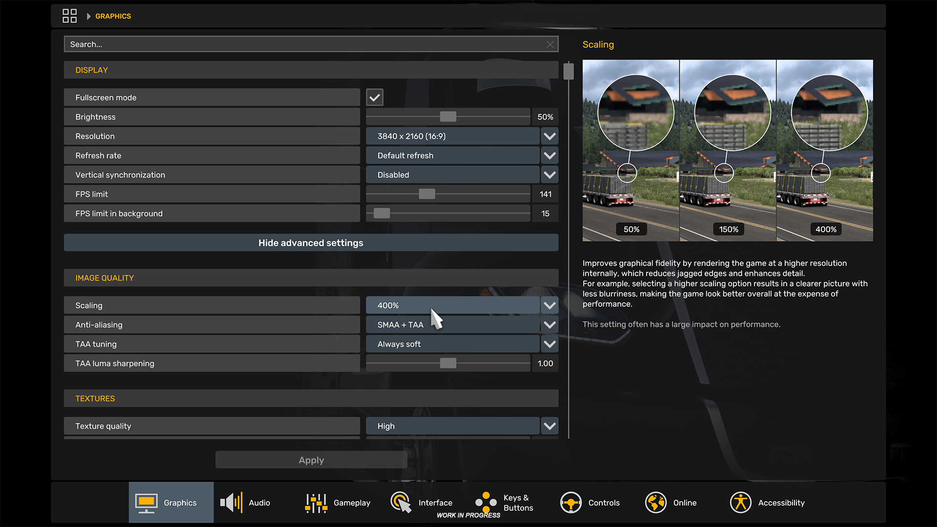 Options QoL ImprovementsIn this update, we’ve added a small but useful quality-of-life improvement to the graphics settings menu. You’ll now see example screenshots next to various settings, giving you a better idea of how each option affects the game’s visuals.