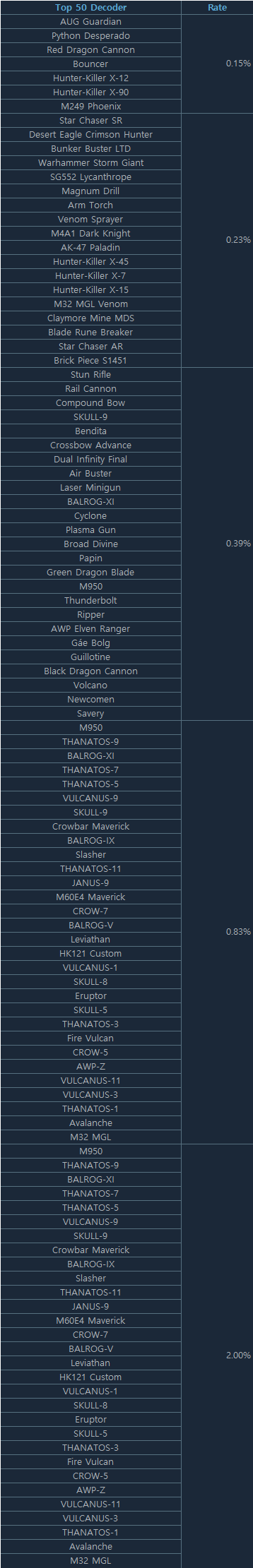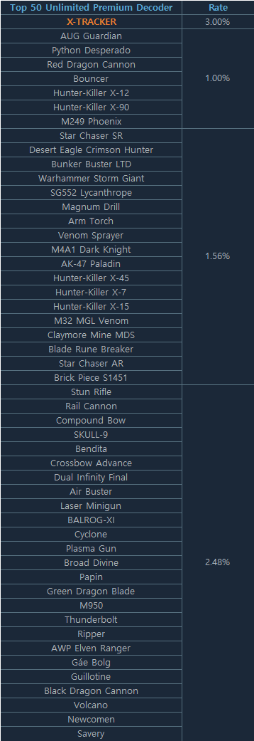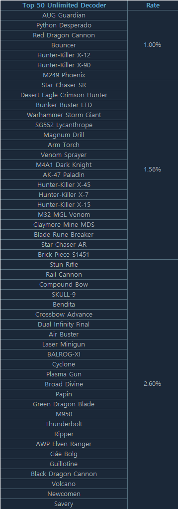 This will be updated irregularly when the chance and the items are changed. We hope this allows you to enjoy CSN:S to its fullest, knowing exactly what you can get.
