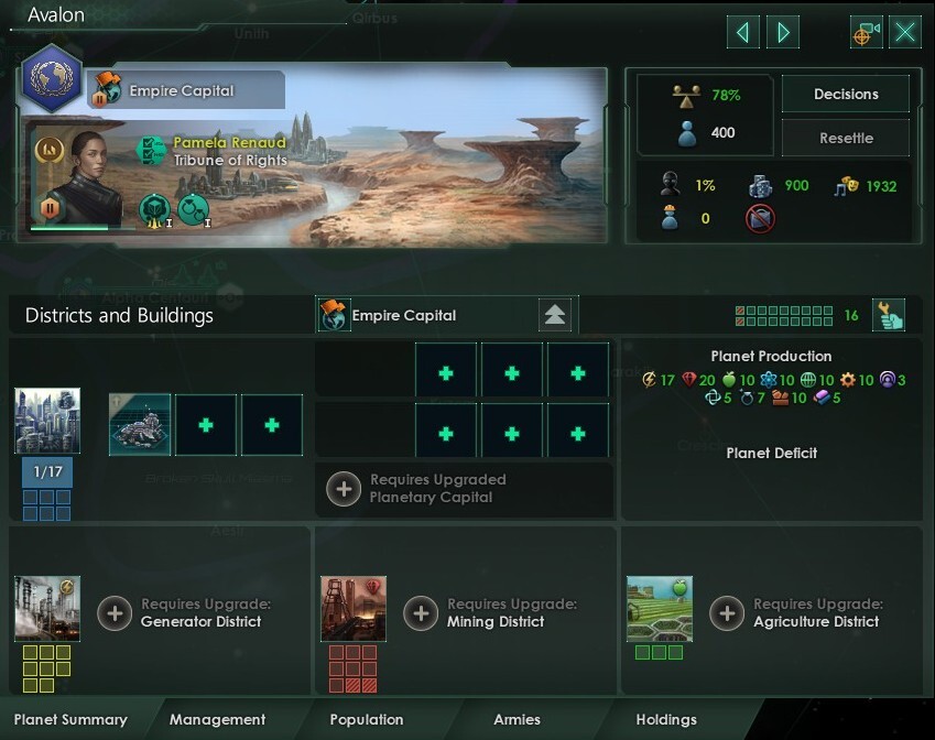 Planets now have six building slots by default and two zones that can be used to specialize their urban districts.