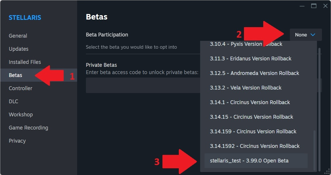 Go to your Steam library, right click on Stellaris -> Properties -> Betas -> select "stellaris_test - 3.99.6 Open Beta" branch in the Beta Participation dropdown.