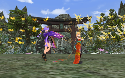 During the event period, the NPC Murasaki Shikibu will appear in front of Statue on Onigashima. By speaking with her, you can progress through the event quests.