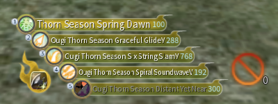 ■ Other Effects Additionally, the buffs from Spring, Summer, Autumn, Winter have the following effects: ・Corresponding Attribute +50 ・Reduce the cooldown of the [Ougi Thorn Season Distant Yet Near] by 10 seconds ・Attack -10% ・Inflicts Poison status that deals 100 damage per second ・Inflict Poison status for 20 seconds, dealing 150 damage per second