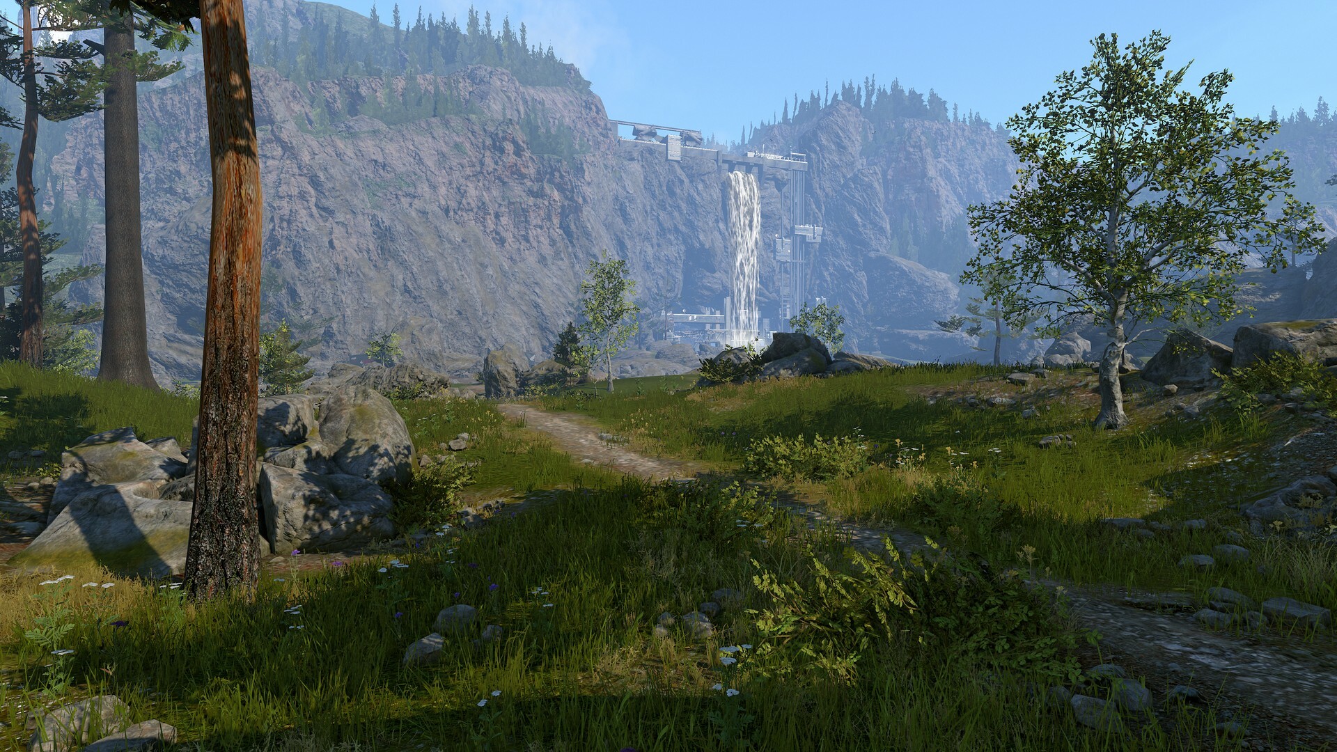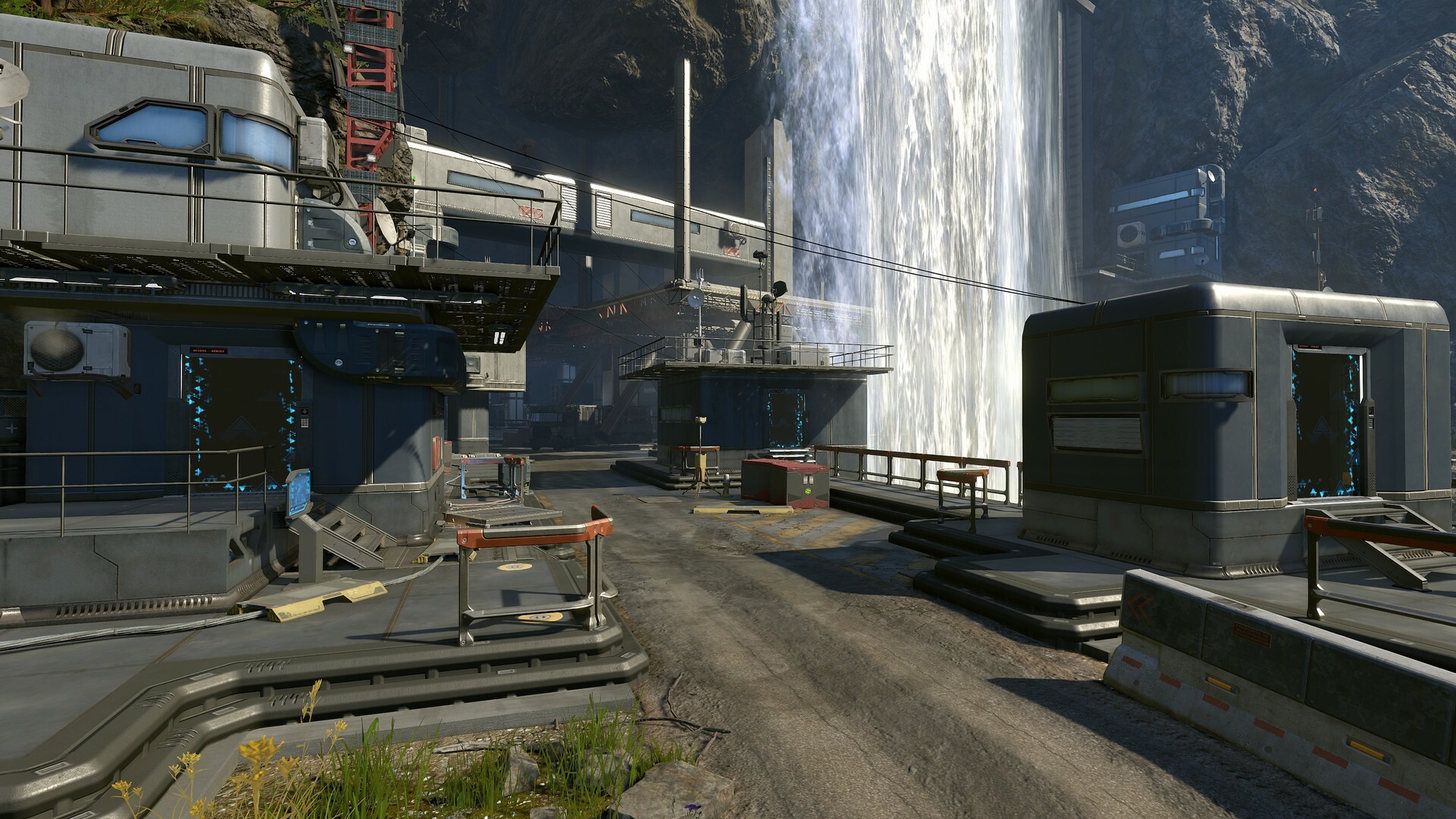 The squad crosses a mountain pass and reaches the tower from behind — the waterfall, from where provisions and gear for the inside complex is supplied. The fighters face resistance from turrets and a SED, and having cleared them, they take an elevator to the internal perimeter of the Labyrinth.