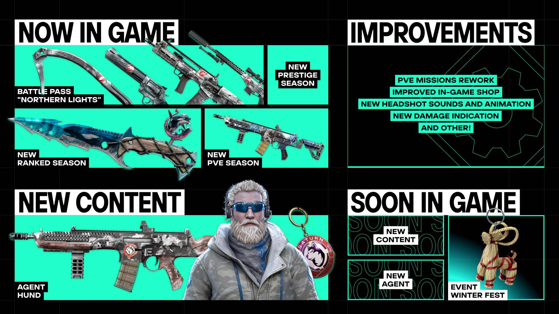 We've added contracts with the new content. Complete tasks to get "Fenrir" weapons, boxes with the Agent Fenrir suit, unique achievements, a weapon charm, and other useful items.