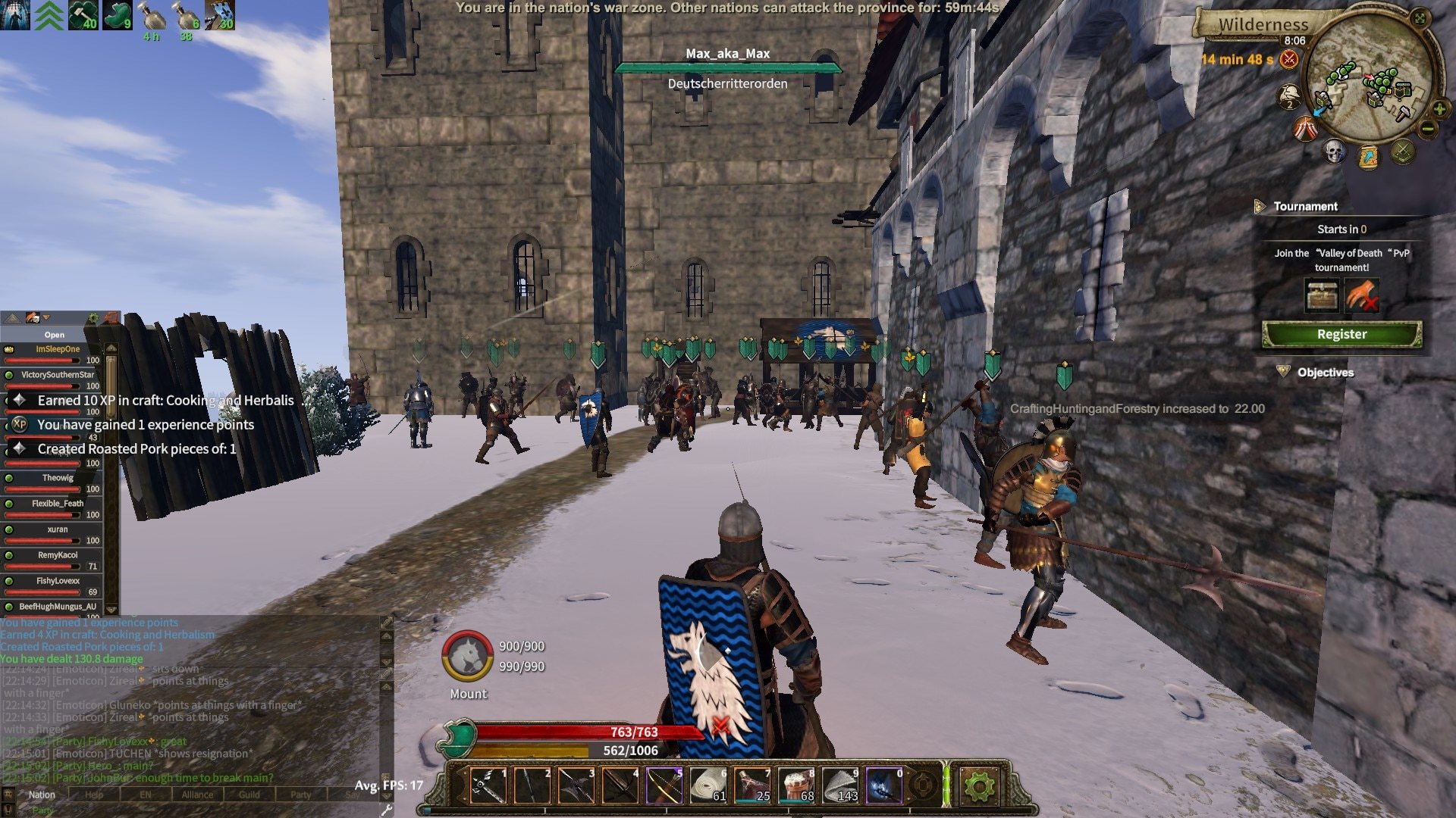 – Clicking a register to the Valley of Death tournament from now on puts the player into an interruptible state for 5 seconds before sending the request, and we have disabled the registration while the player is dead to prevent players abusing registration in the middle of the fight or while dead to prevent looting. – Reworked the global map legend. The legend is a list of clickable filters which players can use to show only the information and icons they want to see on the map. This is making the map adjustable, more clear, and convenient in use. It is still a work in progress, yet we decided it is much better than the previous one so we didn’t want to delay it. – Tweaks to mobs AI: Giants and Moas (scavengers) attack animations will not break on hit, but will be properly mixed up. The mobs will not be slowing down their movement while being close to the target, as they stop while attacking. Giants received two additional attack animations. – Update to resource node disintegration system. From now on all nodes have a solid, unbreakable core, which will indicate the exact place of the given node spawn. – The experience and coins buff for the underdog is not any more related to the depth of underdog status. From now on, the buff is fixed, to prevent players from exploiting and manipulating the game balance by observing the buff stacks. – Blockade for building on the castles now triggers on destroying the building, not hitting it, because of abusers shooting at the castles from afar to deny content and disturb other players' gameplay. Other building blocking variables did not change. – Balanced the materials required to craft Karleonian Pick and Karleonian Mace, to show more clearly, that mace is stronger than pick and unify the complexity of their recipes.