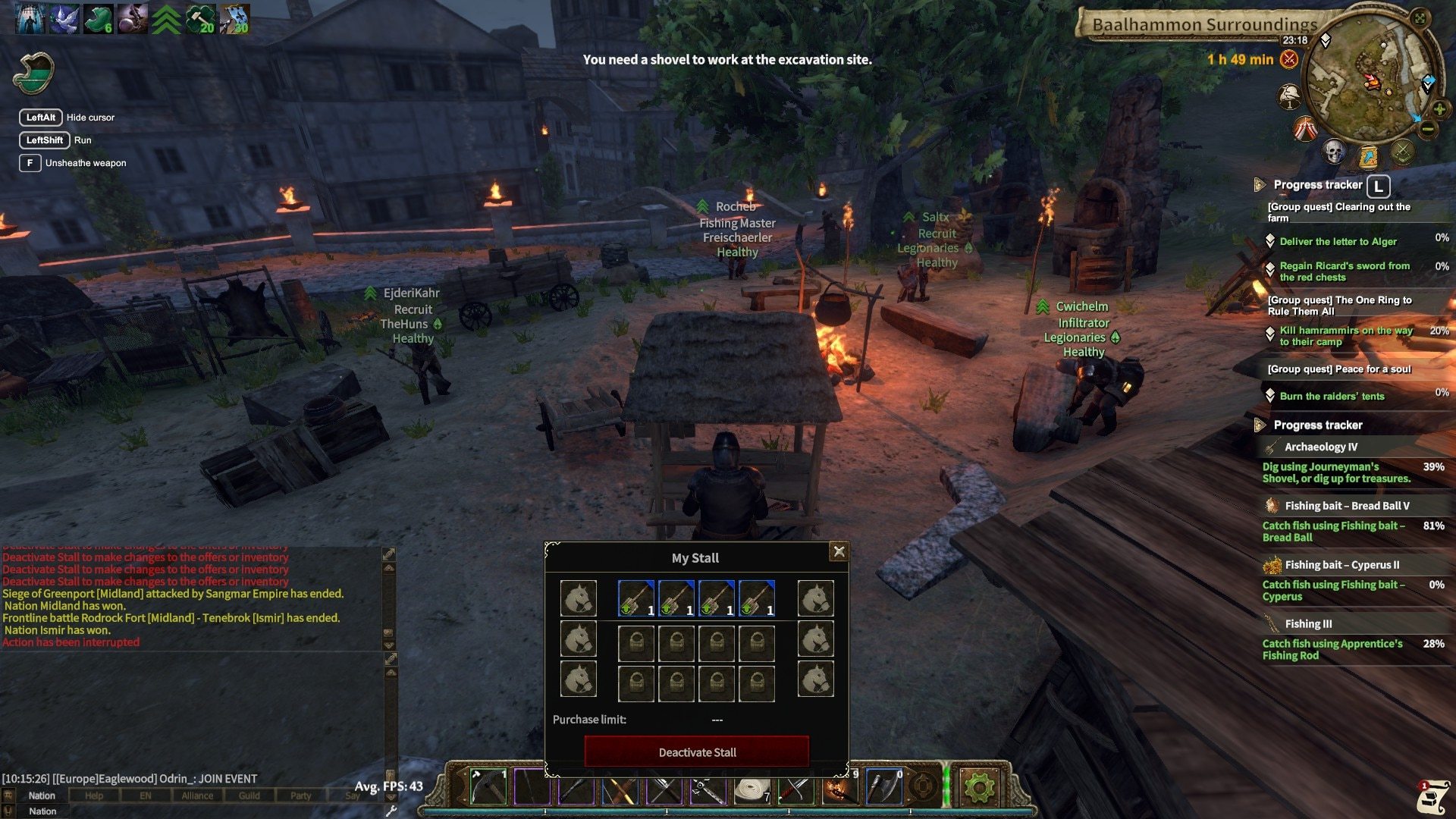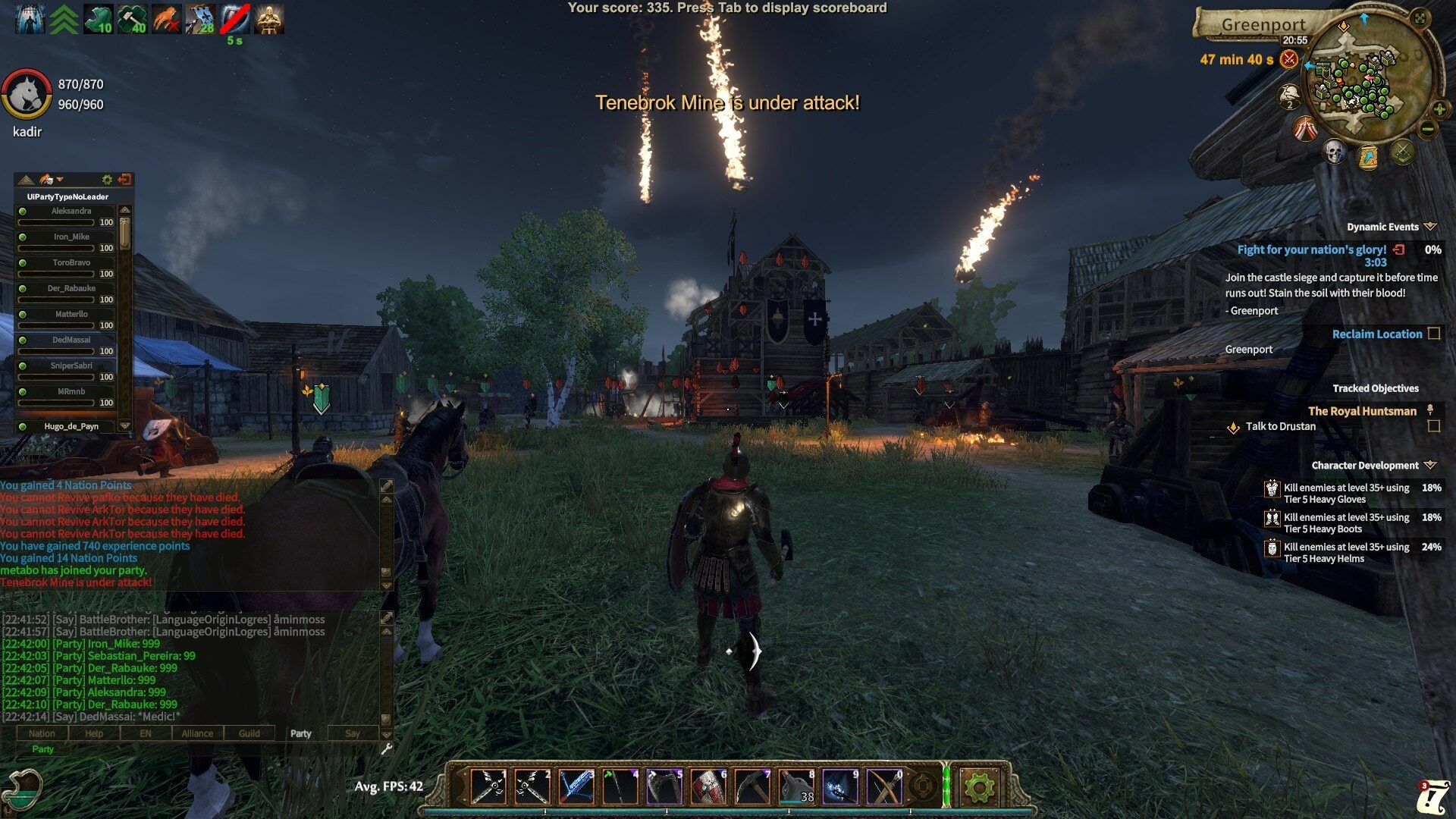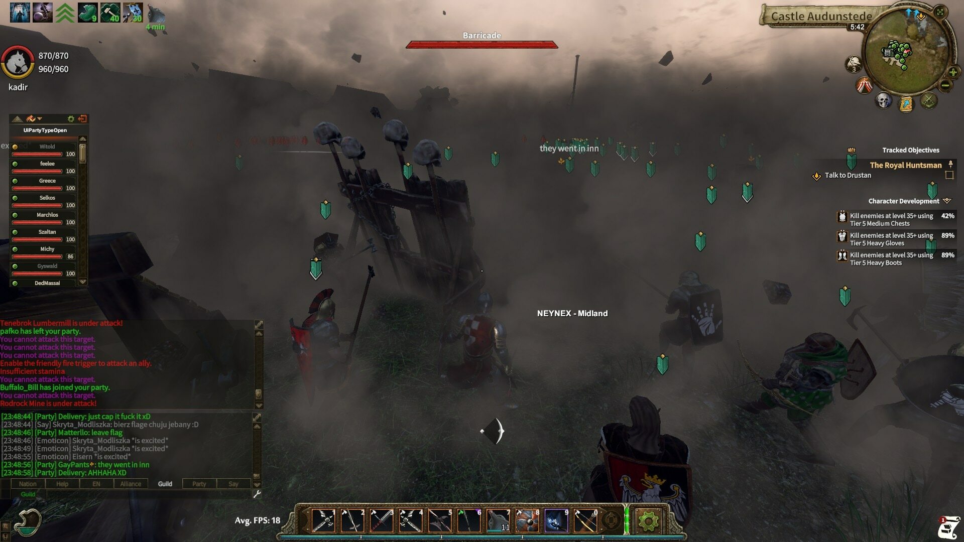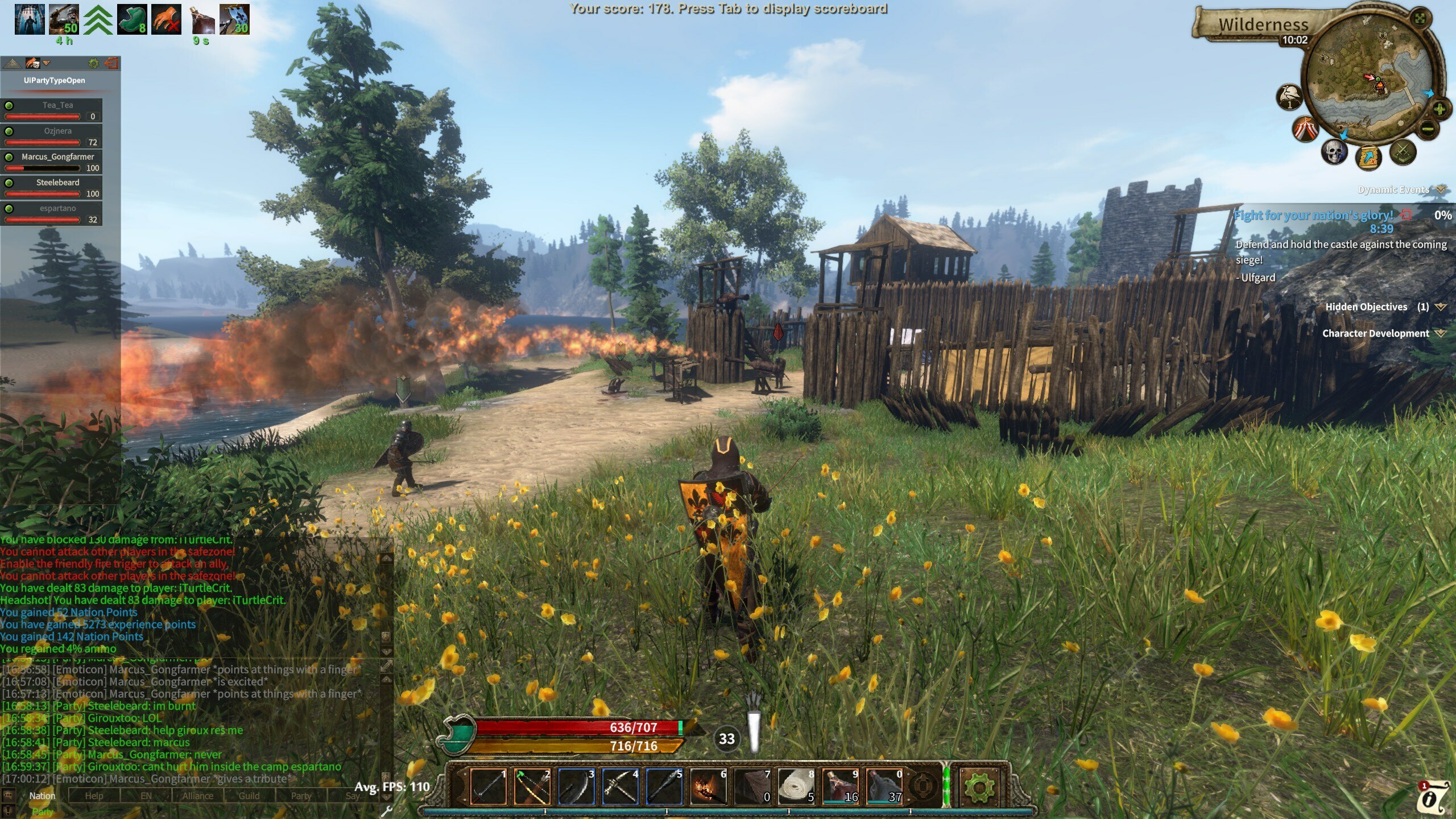 – Fixed an edge case bug that caused defensive siege engines (oil, stones, or logs) to not deal damage. Yes, the Pilgrim's Rock oil should work properly now. Thank you for your reports and commitment that helped us to find the source of the problem. – Fixed a bug that caused the equipment tier on item tooltips to be displayed as untranslated color coding instead of the actual tier numbers (1-5). – Fixed an edge case issue that caused the character to move slightly faster while being in combat mode while moving in a certain direction and with a certain attack type. – Fixed an issue in which the horseman ability "Battle Horse" [increasing damage] did not work against the NPC enemies. – Fixed a bug that caused that the fishing events were permanently disabled until the next server restart if they ended with failure. – Fixed an issue that caused only 1 user to receive a reward for a treasure if two players were doing the very same treasure quest while being in a party together.