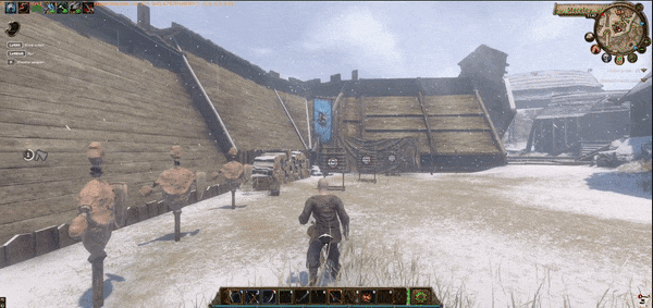 – Reworked game options user interface, to match the new setting and visuals. – Added new quest HUD animations. Quest side panel receives a set of animations, to be more engaging visually and rewarding for the eyes. Accepting, removing, completing, pinning, unpinning, hovering quests, and changes in hidden quest counters are covered with special animations. – Removed checkboxes from tasks with just one progress point in quest log and side panel HUD. – Removed chat activation with “/” key. – For balance purposes, we reduced the base damage of torches but added bonus damage vs buildings for them. – Reduced despawn time of fireplace from twenty to three seconds after it gets poured by a bucket of water. – Changed the layer of shields, to make them visible from a greater distance.