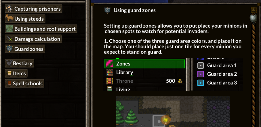 KeeperRL’s help tab has been a bit empty for a looong time, and I’ve finally decided to change this, especially that a number of mechanics in the game is routinely hard to understand for new players. I’ve created a simple and easy system to add pages that feature text, images and even links. I’ve used it to add a few short tutorials for things that people often ask about in the forums, and I’m planning to extend it with anything that is ever unclear. This is much easier than adding new tasks to the main tutorial, and also lets me keep it relatively short, which gets people more quickly in the game.