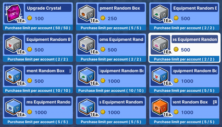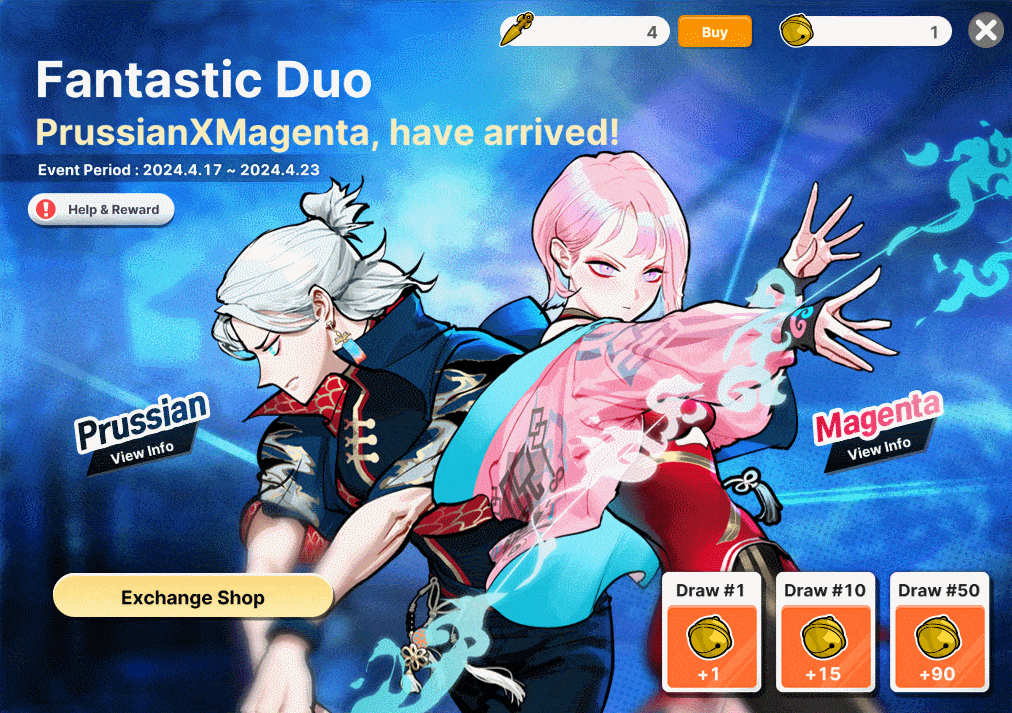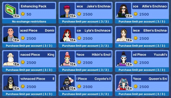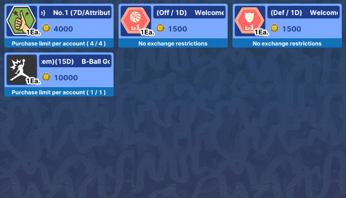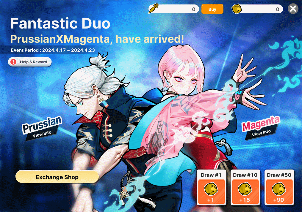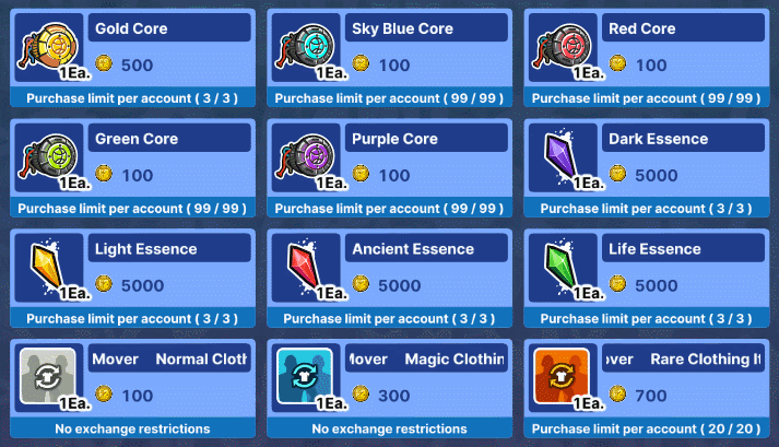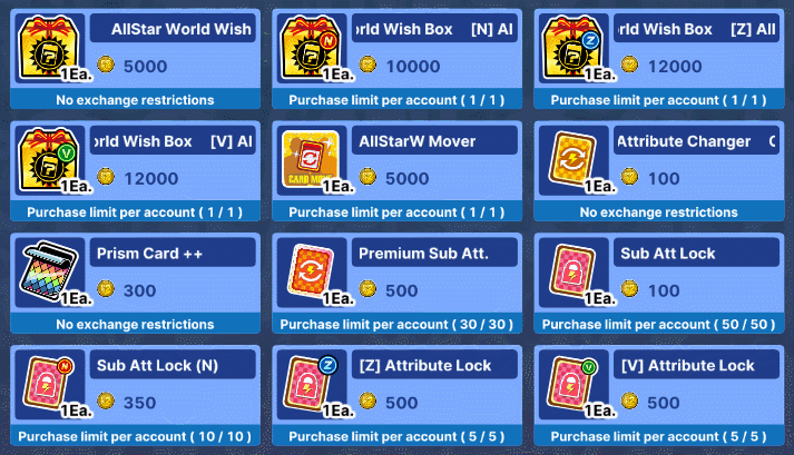 - Purchased Products and Exchanged items are sent to your Gift Box. - Products on sale cannot be purchased with Event Cash. - Some products are exclusively available for purchase with the "Prussian" and "Magenta" characters. - Crafting materials will be applied immediately to your account.