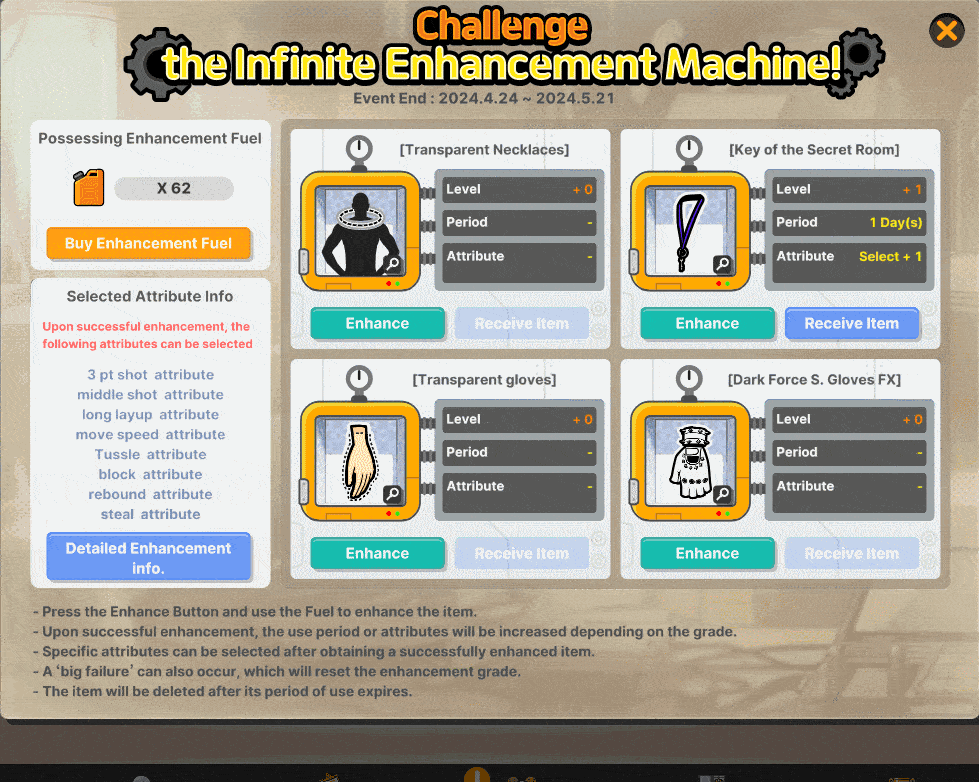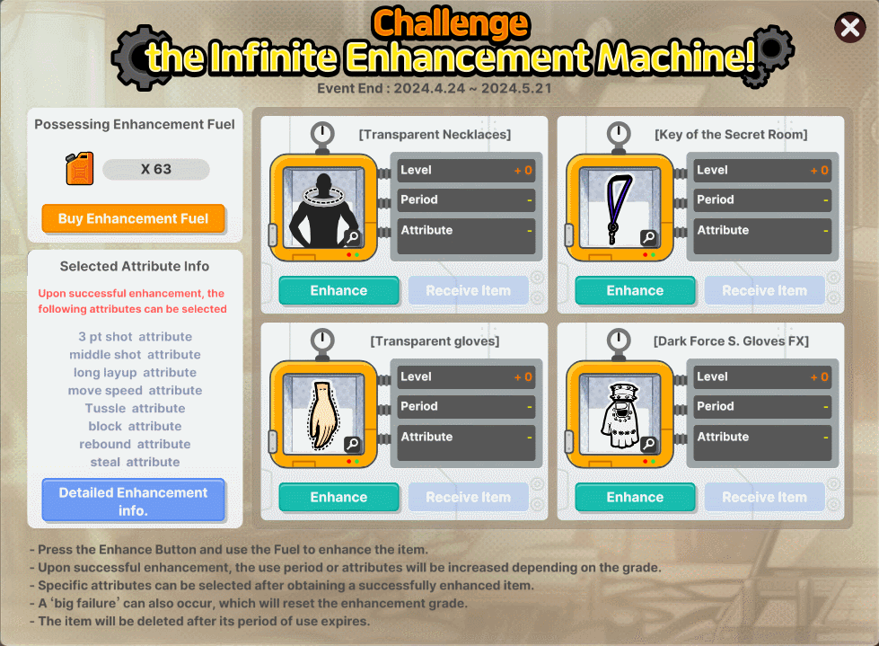 Note: Event Gkash can be used to purchase Enhancement Fuel.