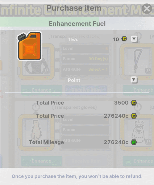 Additionally, you can also obtain other items using the mileage obtained from enhancing the item!
