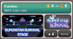 2. Superstar survival mode is individual mode. And it need at least 8 player to start. 3. Superstar survival mode will be played at dedicated stage with random selected music.