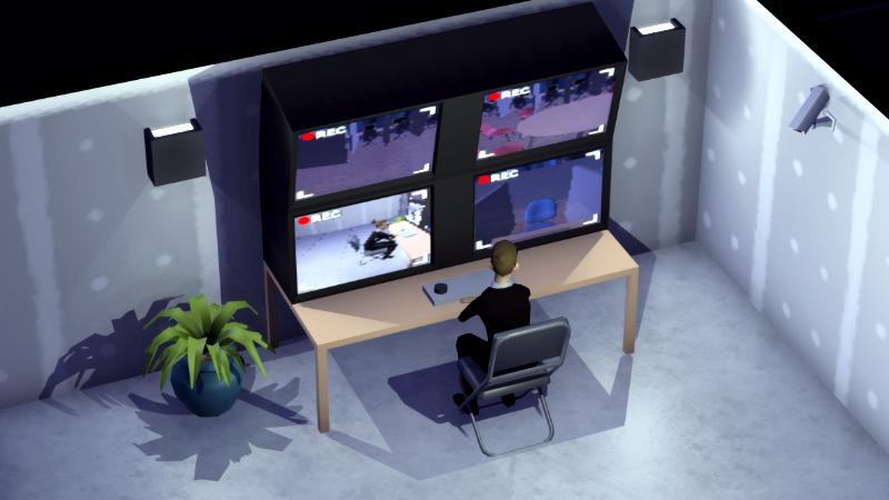 This update introduces an overhauled security system. Your employees will now call the police when they see a burglar, and security cameras have to be actively monitored by a security guard using a surveillance desk, which allows one guard to surveil four places at once.