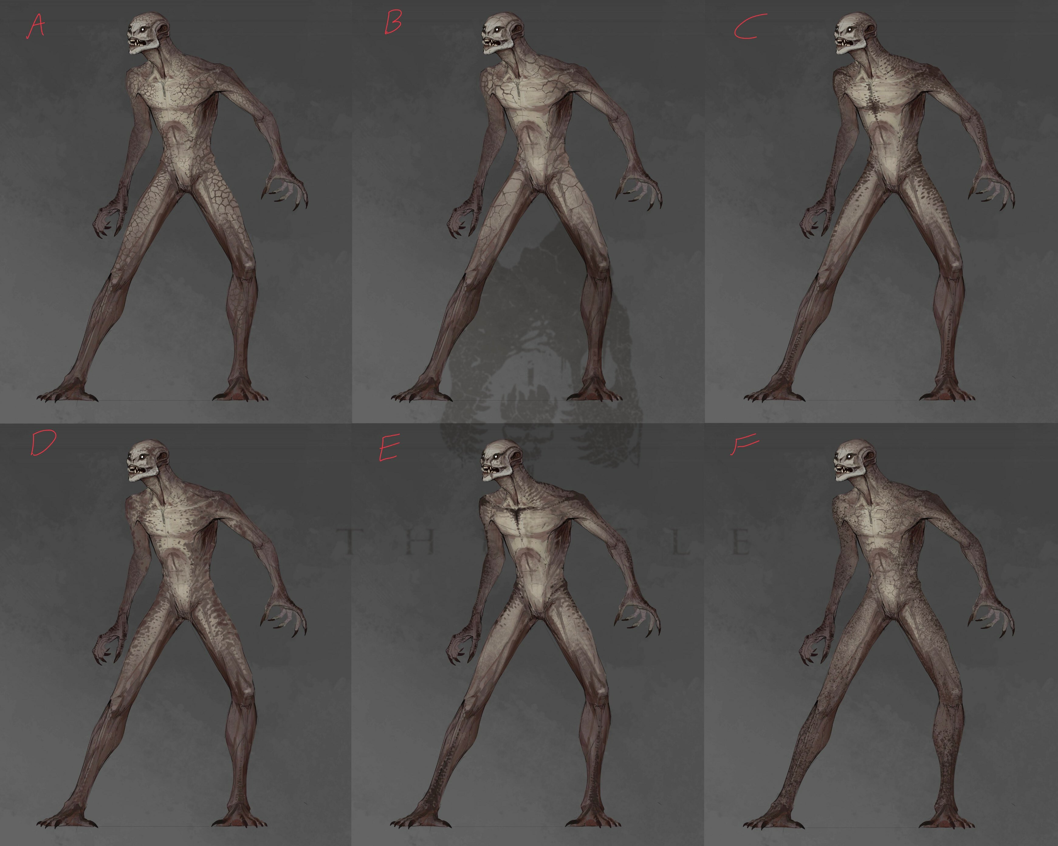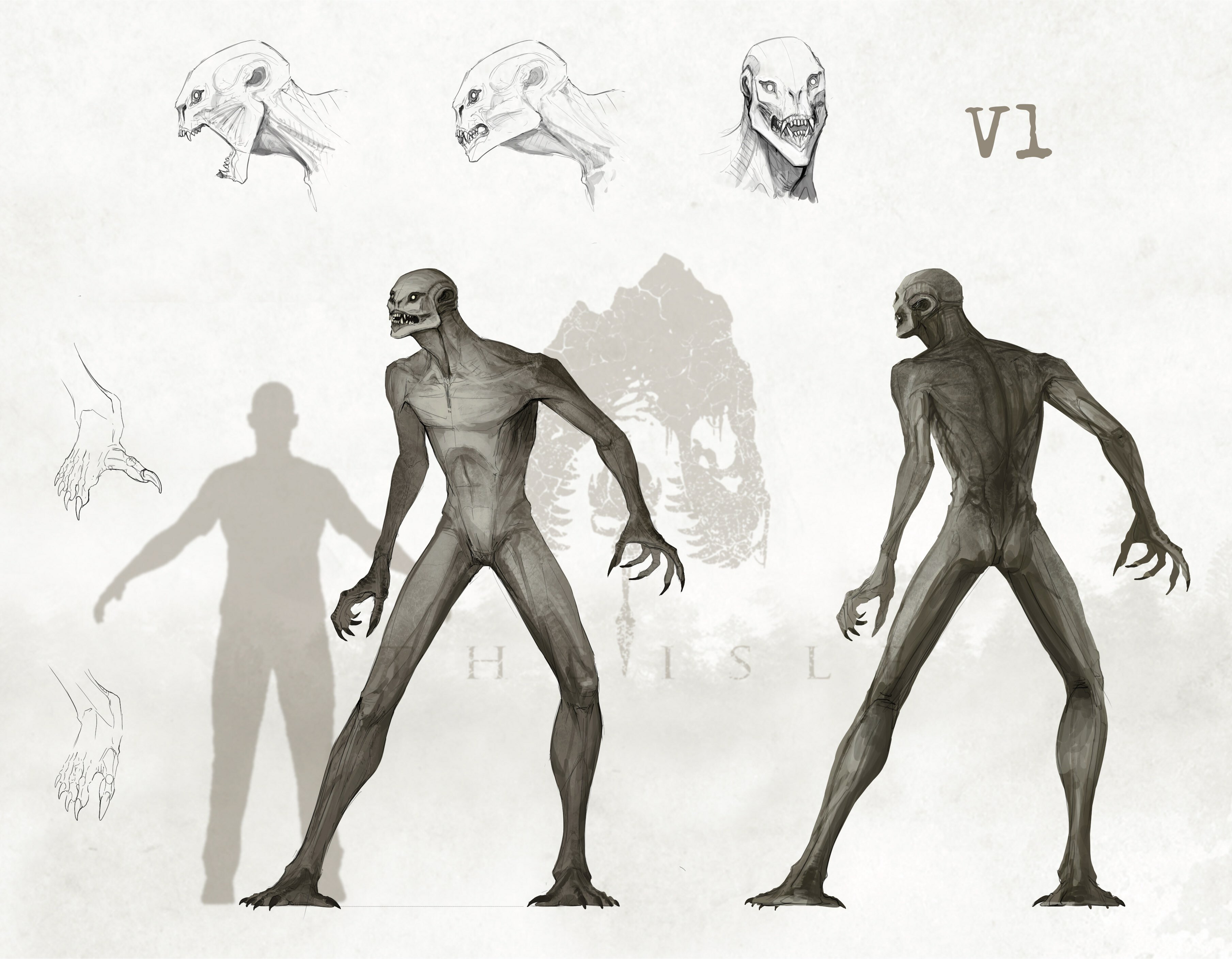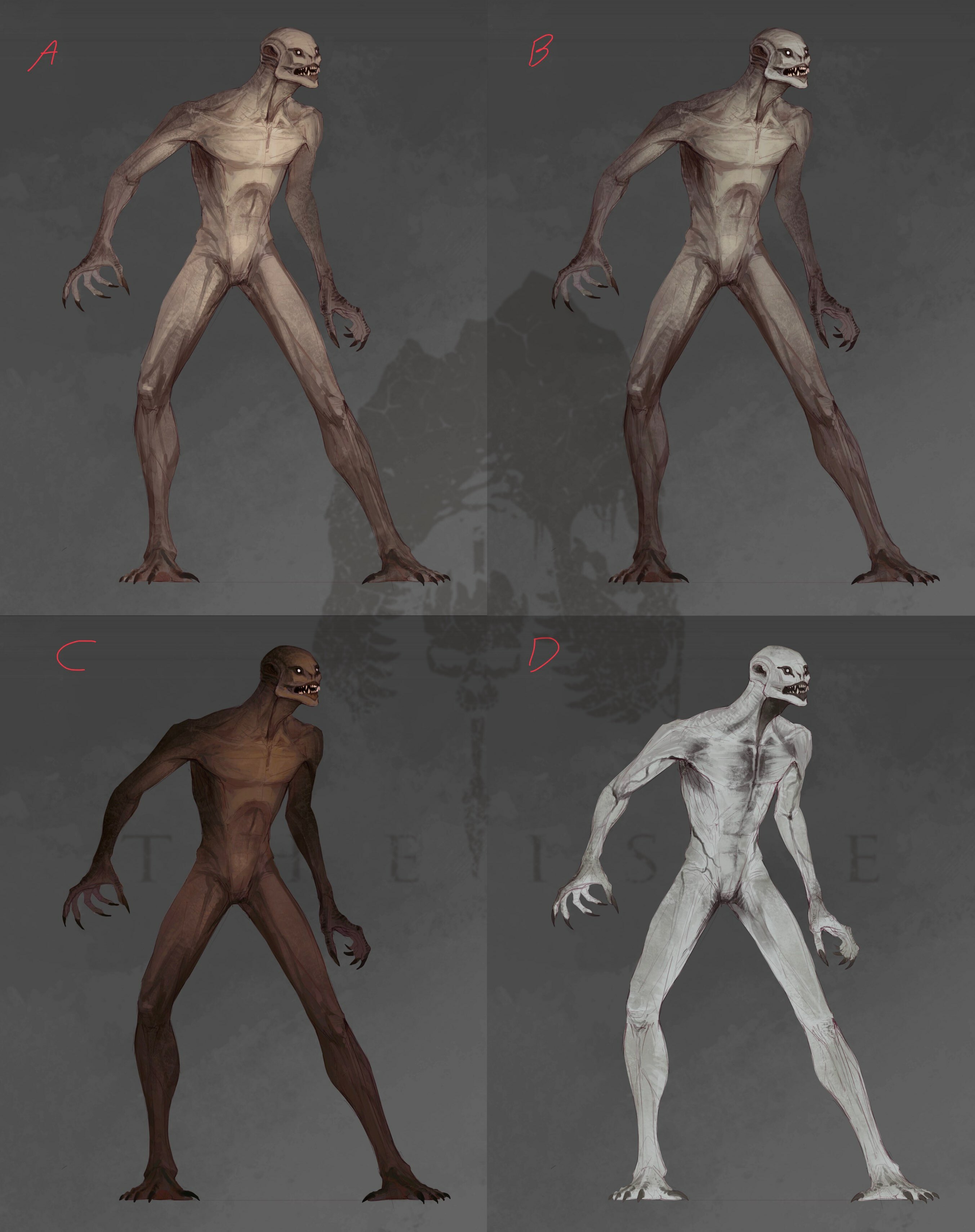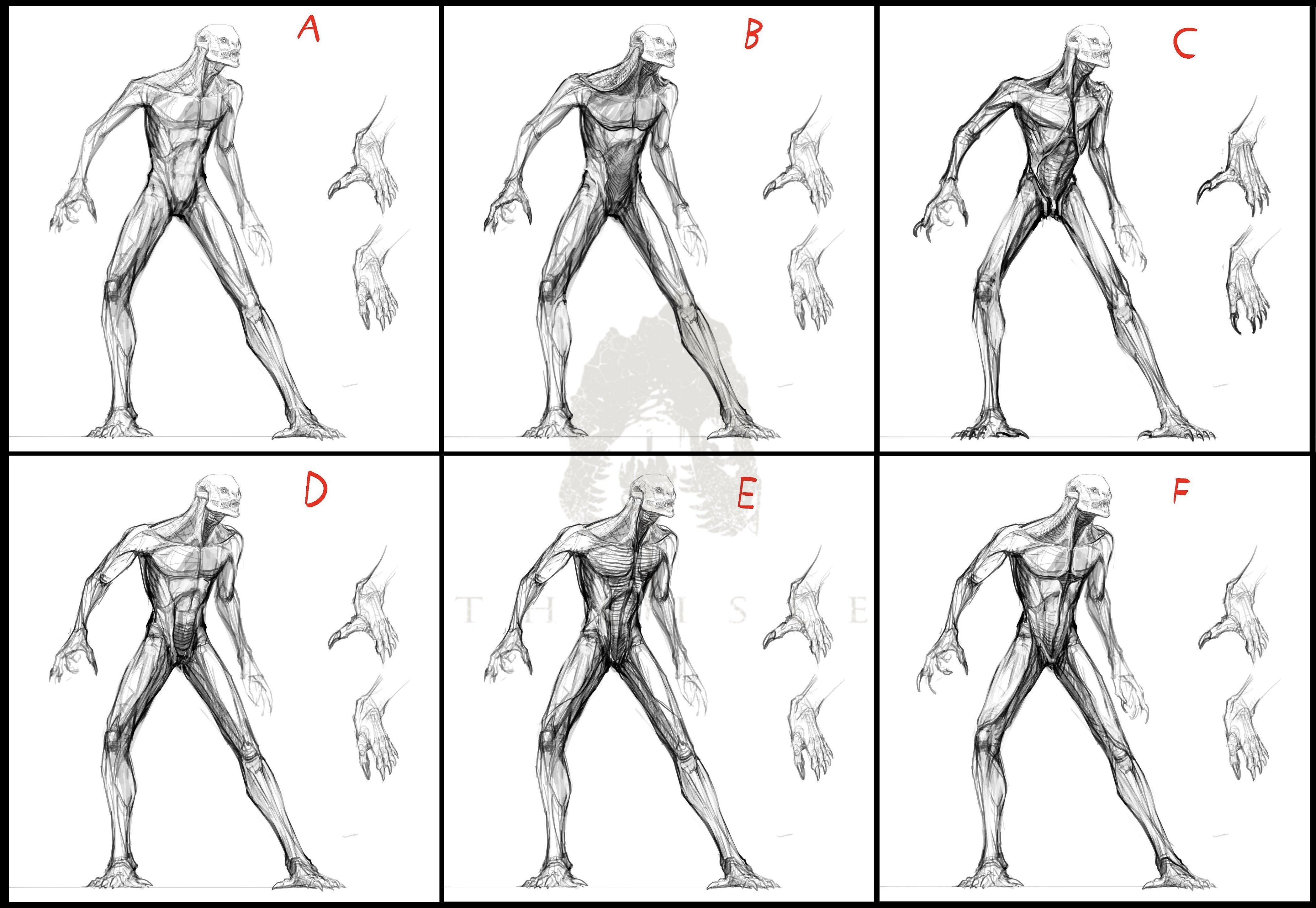 Gen 1's have gone through many changes since we've begun concepting playstyles and intent. I'm happy to say their first playable archetype has been fully through the concept phase and can be moved into production. Attached below are some of the pieces used to dictate the design direction, including two different head customization types we intend to support. We went through many body types, head styles, and skin features to capture a creature that is very clearly non-human, but retains customization features indicative of a standard humanoid character. In the future, we hope to provide a myriad of head and body choices for a player to make this incidental abomination of science feel like their own.