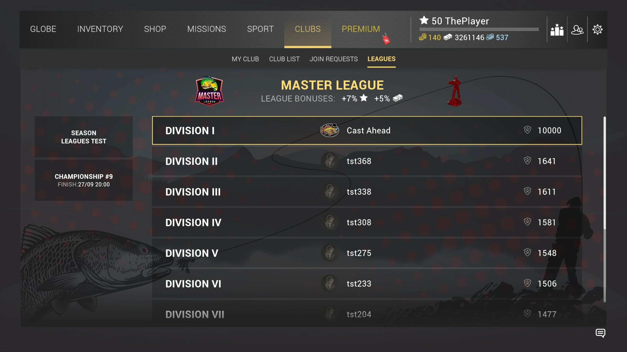 The League is a leaderboard of club competitions results in the Championship during the Season and the way to compete with the best anglers while being a part of your unique Club within the whole Fishing Planet Community! Leagues will create an engaging and competitive experience for clubs by giving them goals to strive for and a sense of progression as they improve their skills.