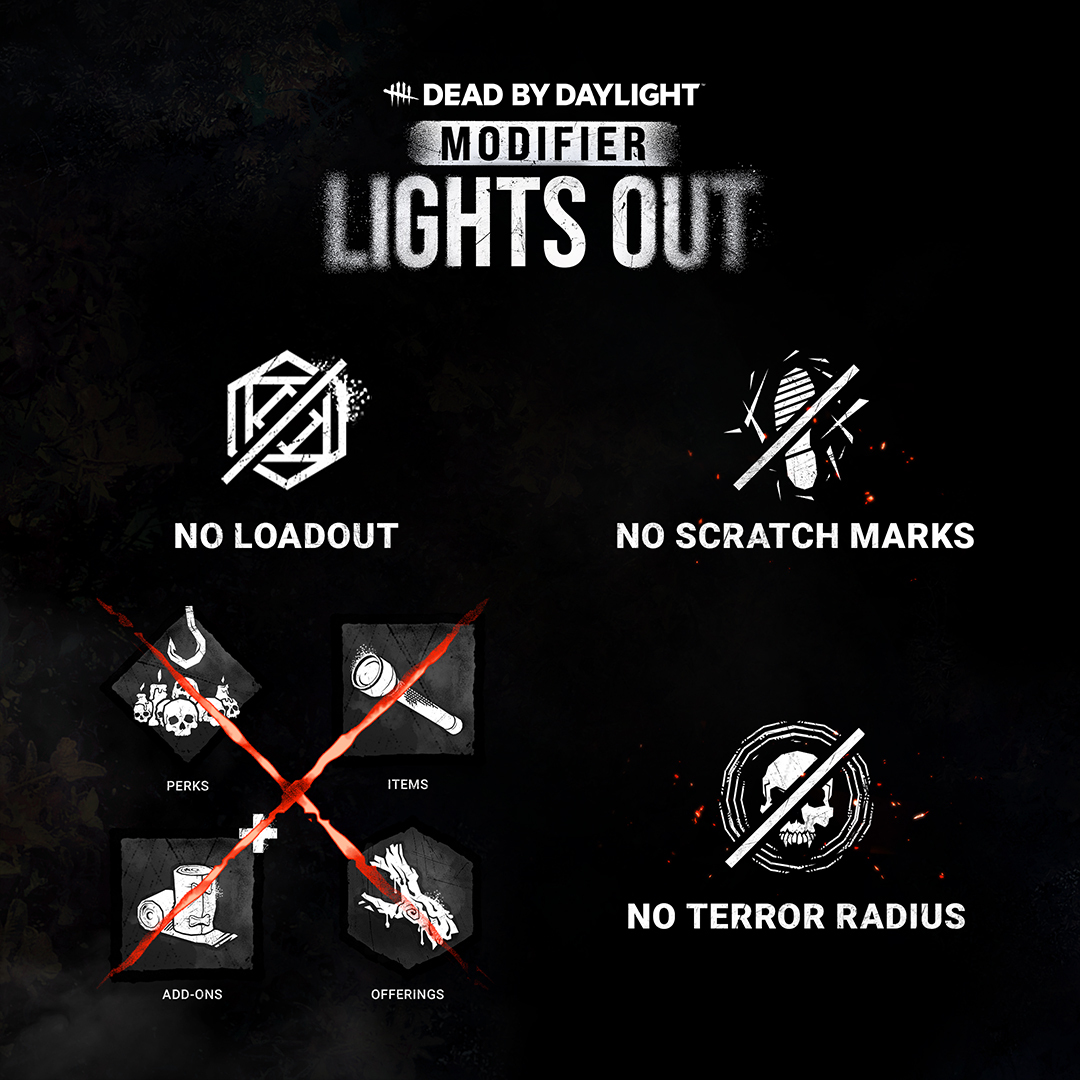 We’re glad you asked. Basically, we’ve been testing a variety of different ways to play Dead by Daylight, with Lights Out being our first official Modifier. These Modifiers grant us some exciting room to play with the existing Trial format, and we’ll be monitoring your feedback to ensure that Lights Out shines as a unique and exciting experience.
