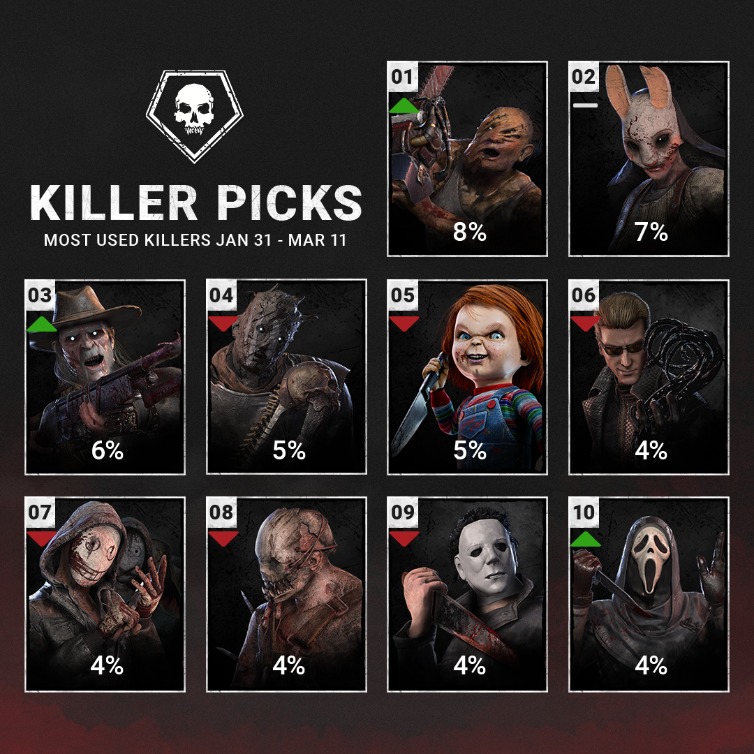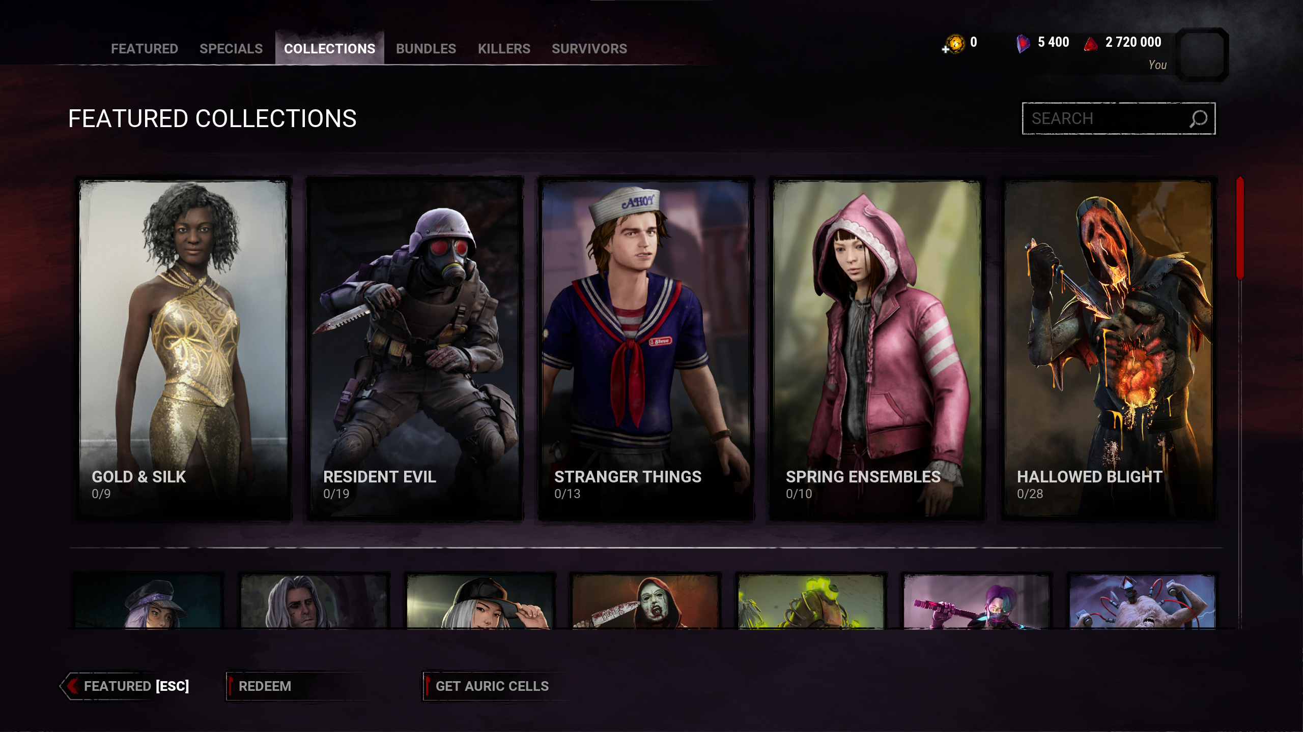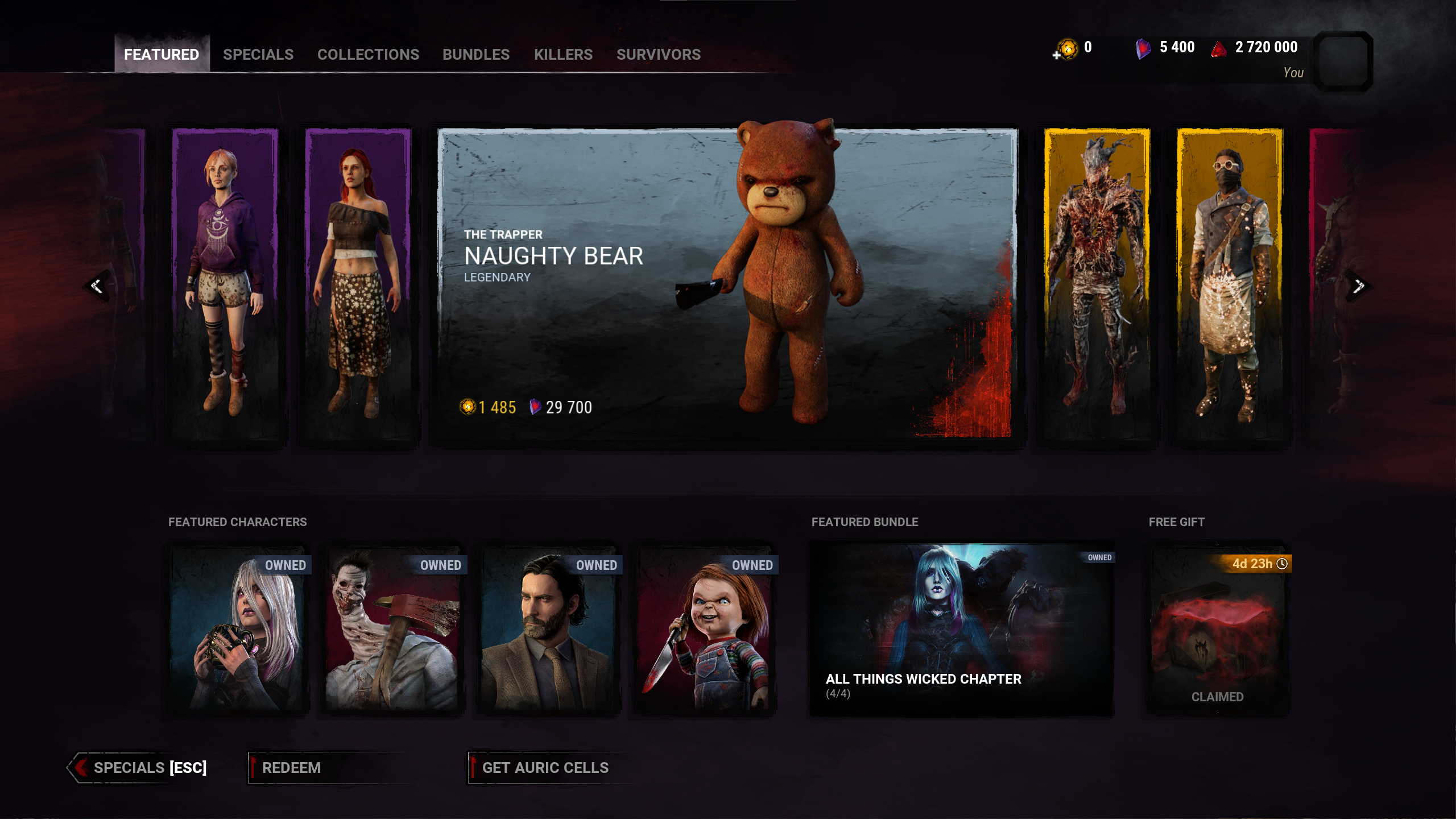 Killer and Survivor dedicated Wardrobes: New separated independent pages for Killers and Survivors that allow for quick Mix and Matching of Characters and their Cosmetics.