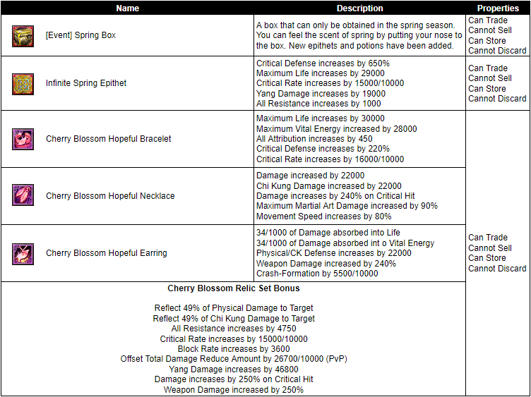 With the coming of spring, warmth fills the air and the smell of flowers blooming saturate the land. To celebrate the spring solstice, we have prepared some great events you can participate in to create powerful Accessories, Relics, and Potions that are sure to help turn the tide of battle. Log in to see what this spring event has to offer!
