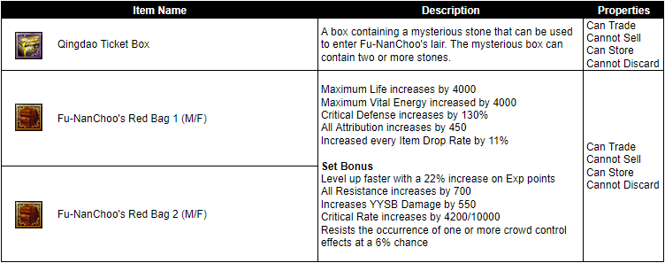 Fu-NanChoo Dungeon (Hard) - (Party: 1~2) To enter this dungeon, you will need 3x [Event] Purple Stone in Qingdao which can be acquired via [atrocious] Fu-NanChoo field boss, Qingdao Ticket Box, and monster drop in Fu-NanChoo Dungeon (Hard).