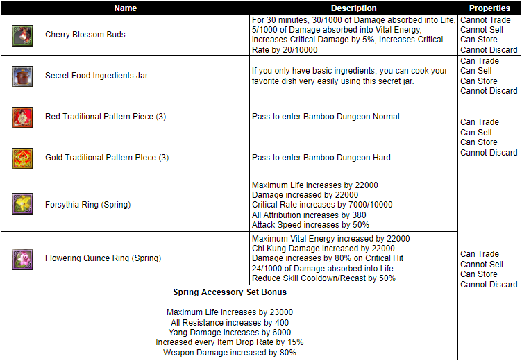 With the warm wind of spring comes the blessings of the Spring Buff. The following bonuses, will run for the event period's duration.