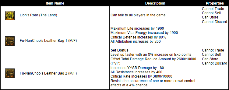 [SIZE=5]Fu-NanChoo Event Quests[/size] As the menace known as Fu-NanChoo runs rampant, terrorizing all The Land, the bounty on his head has reached an all-time high. Start your investigation by accepting the event quest available from Festival Trainee Baekhwa for clues which will lead you to the arrest of this wanted criminal!
