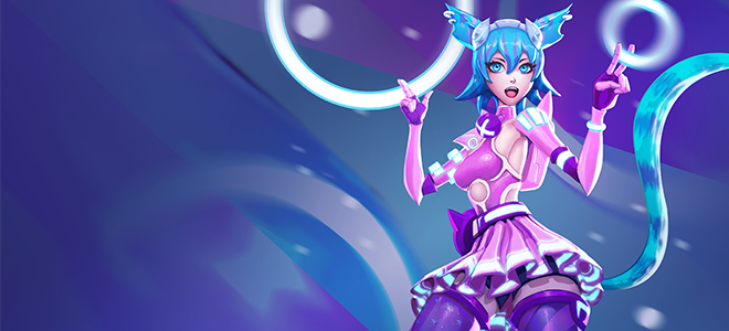 NEV:3 takes the spotlight in her Superstar outfit, plus her Catatronic skin both come in a variety of colors! The rainbow themed Nyan! skin with matching rainbow rings and the pawsitively purrfect Cheetah skin are also available for purchase. On the horizon, new Treasure Hunter skins for Celeste and Grey will be out in a couple weeks, so be on the lookout.