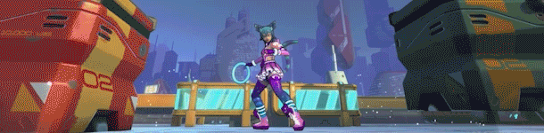 Our newest Firepower, NEV:3 the Kitten Kaboomer, pounces into action! With her custom-madeCatarangs, NEV:3 can prove to be quite catastrophic to her enemies. Her Catarangs can be dished out to deal damage and will stay out for a turn. Afterwards, the Catarang returns to NEV:3 dealing reduced damage along the path to her. NEV:3’s ultimate can throw out 3 Catarangs at once for only 50 energy, she’s quite the catch!