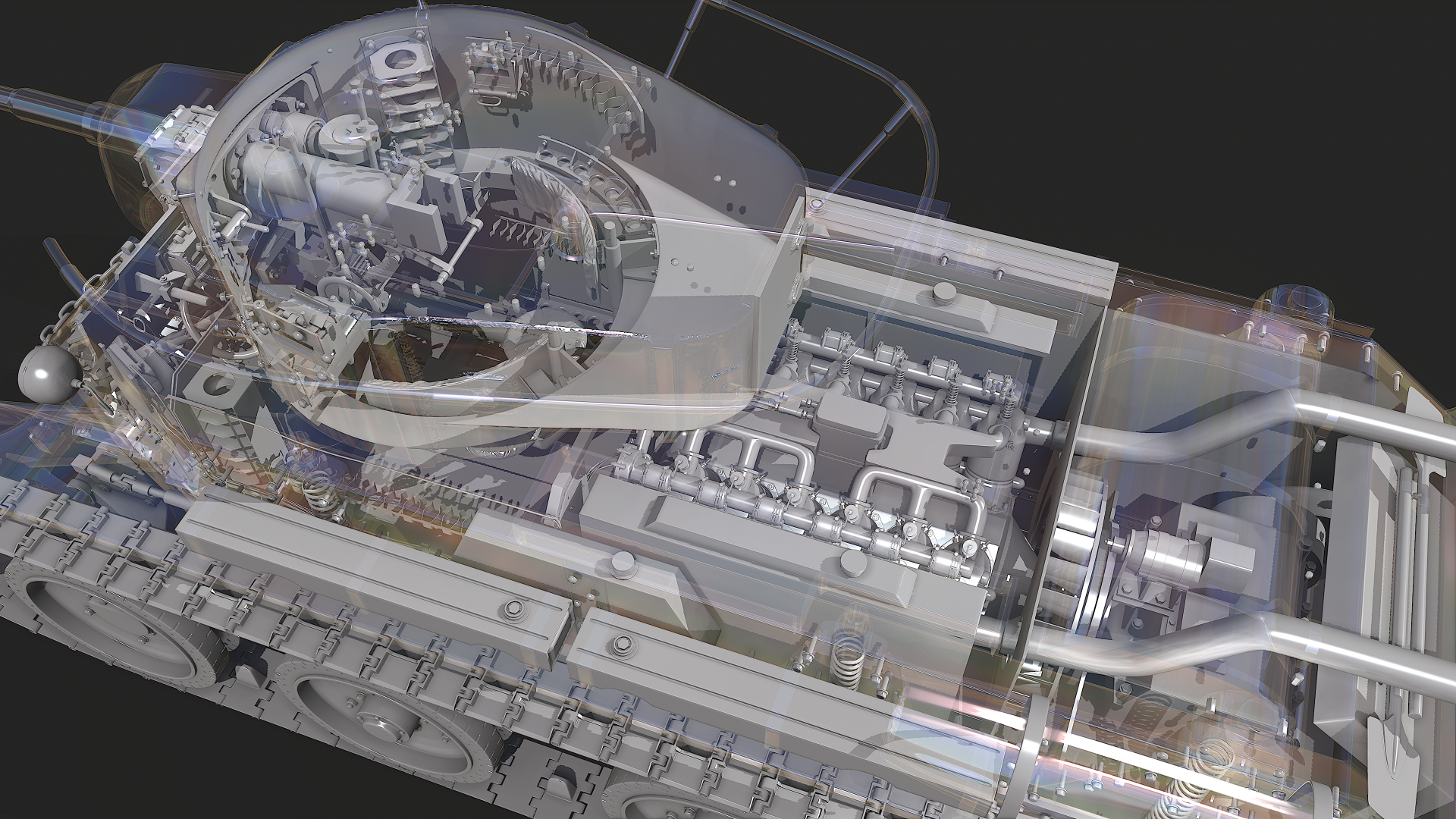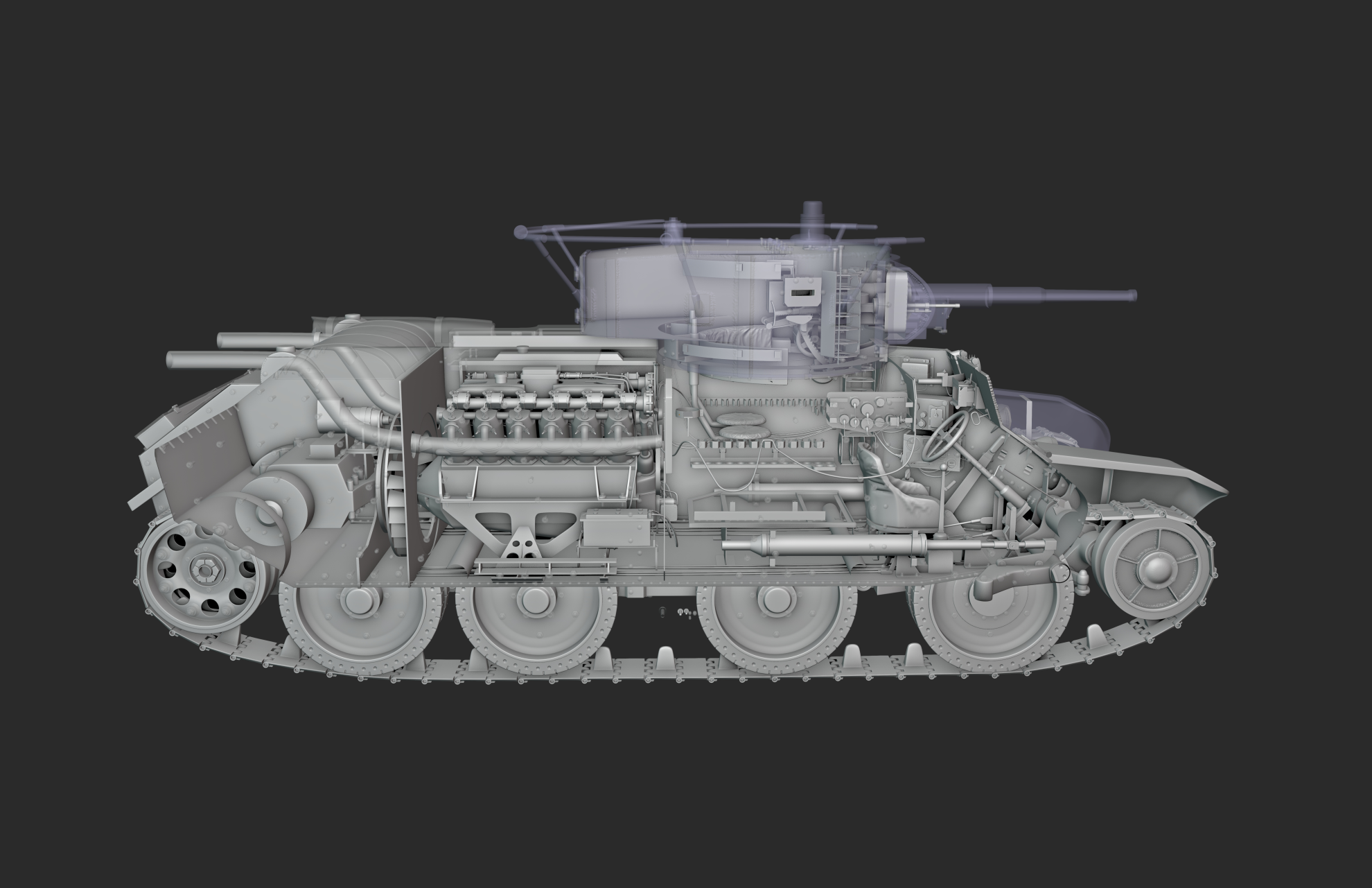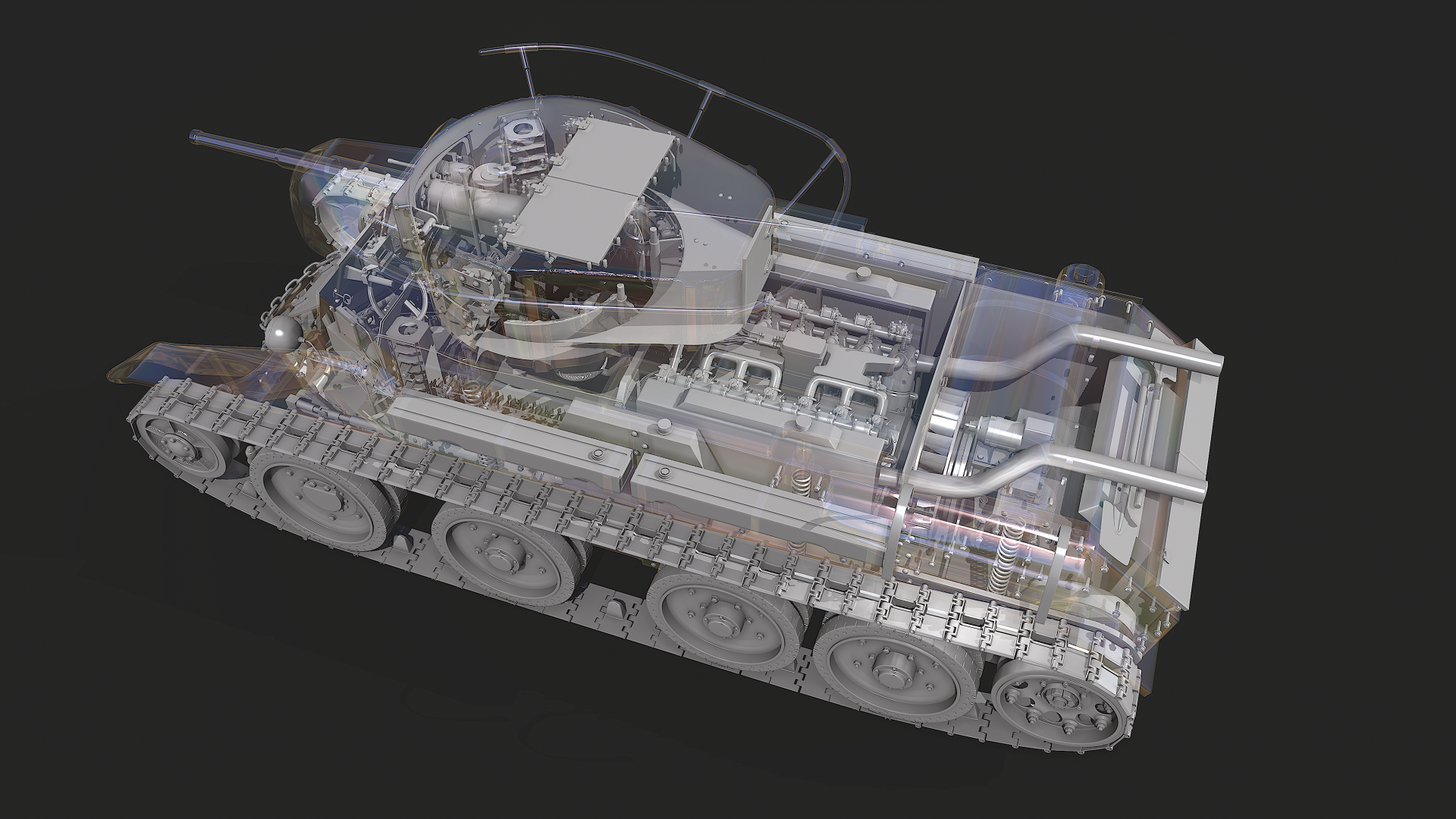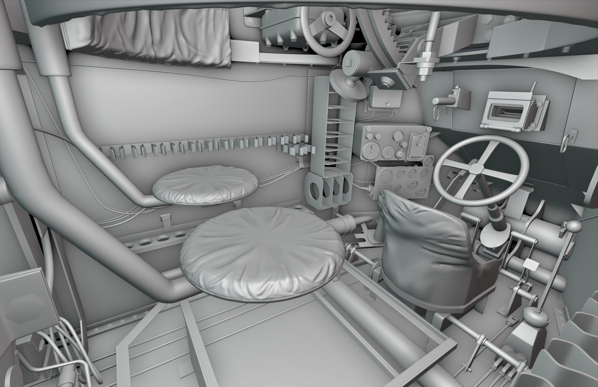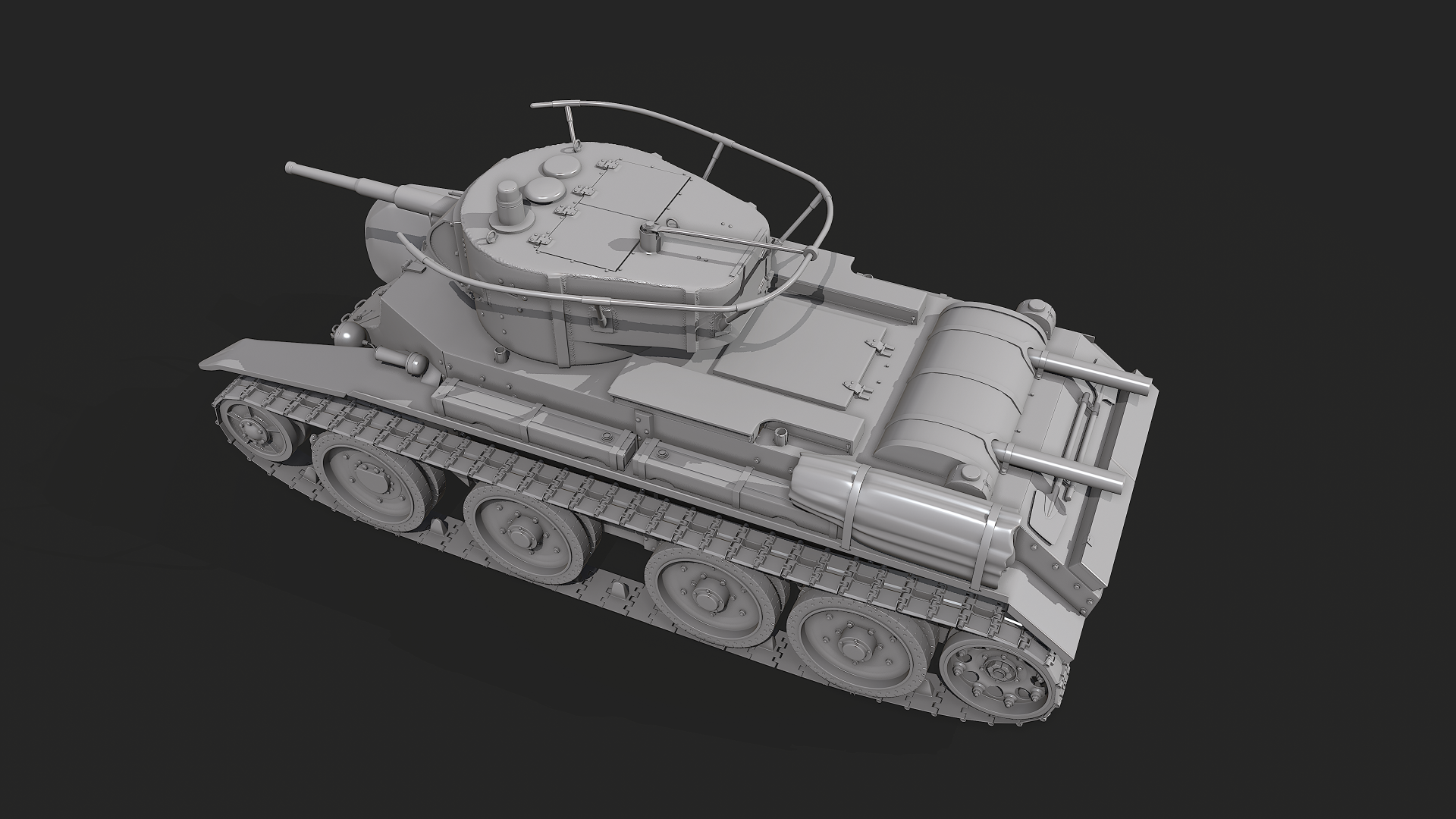 We would like to present to you next tank coming to the game. It is a Soviet light tank - BT-7. Below you can see the work in progress from the production process of creating game asset to the game. We put a lot of emphasis on the interior. More details in the engine or in gearbox such as pistons etc.