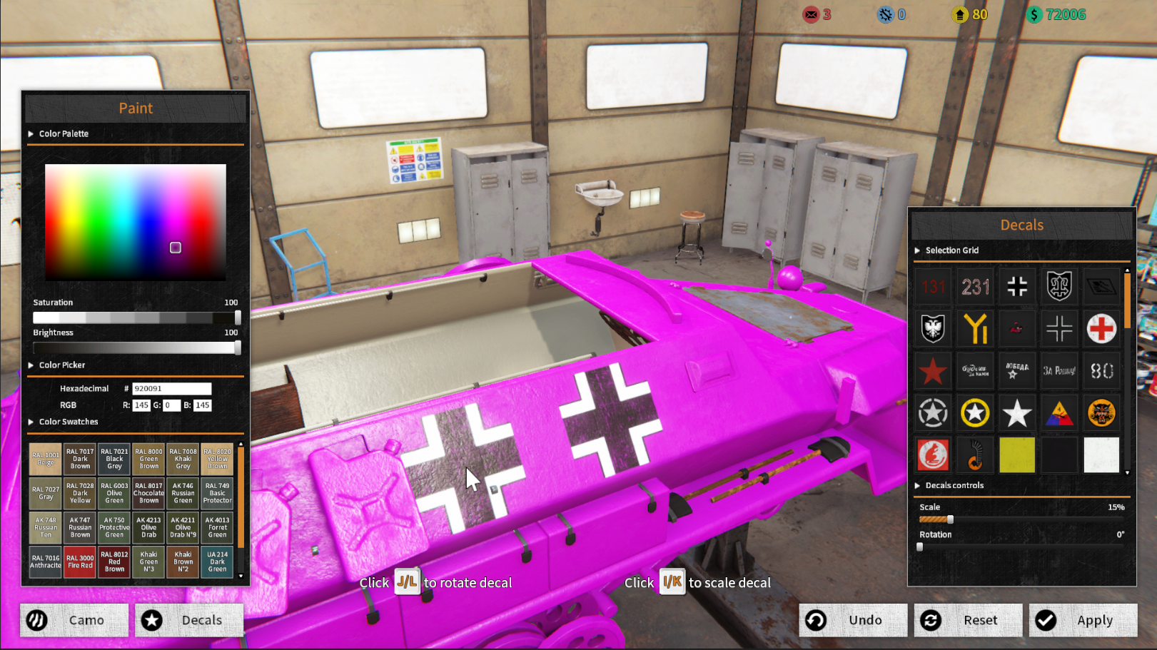 Player will be able to select a paint set from a list, or save the current state of the tank as a new paint set, assign a name and then a file will be created at Streaming Assets folder. When this is ready, we will add Steam Workshop support for paint sets, allowing to share them.