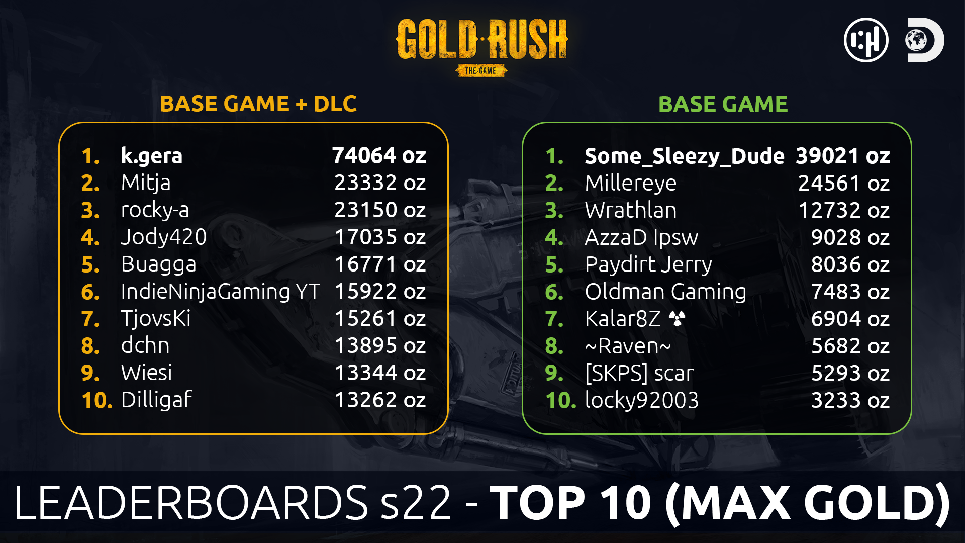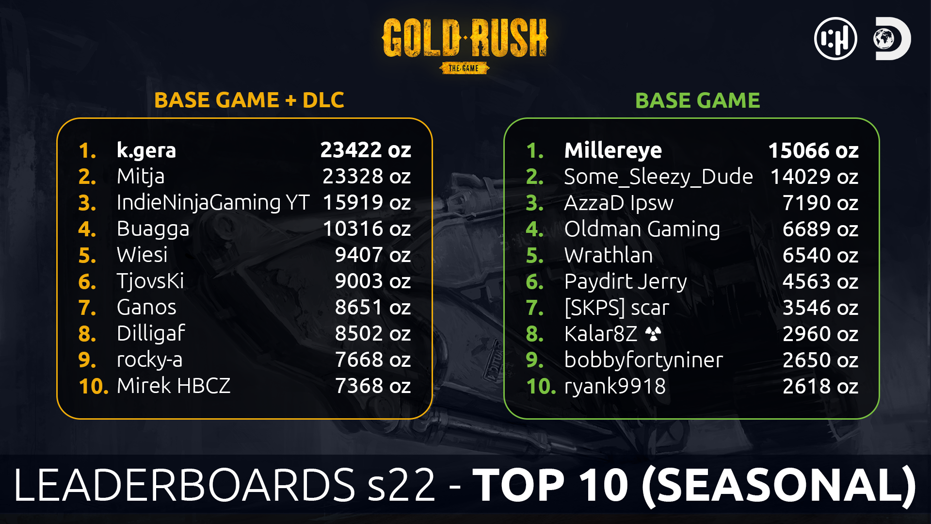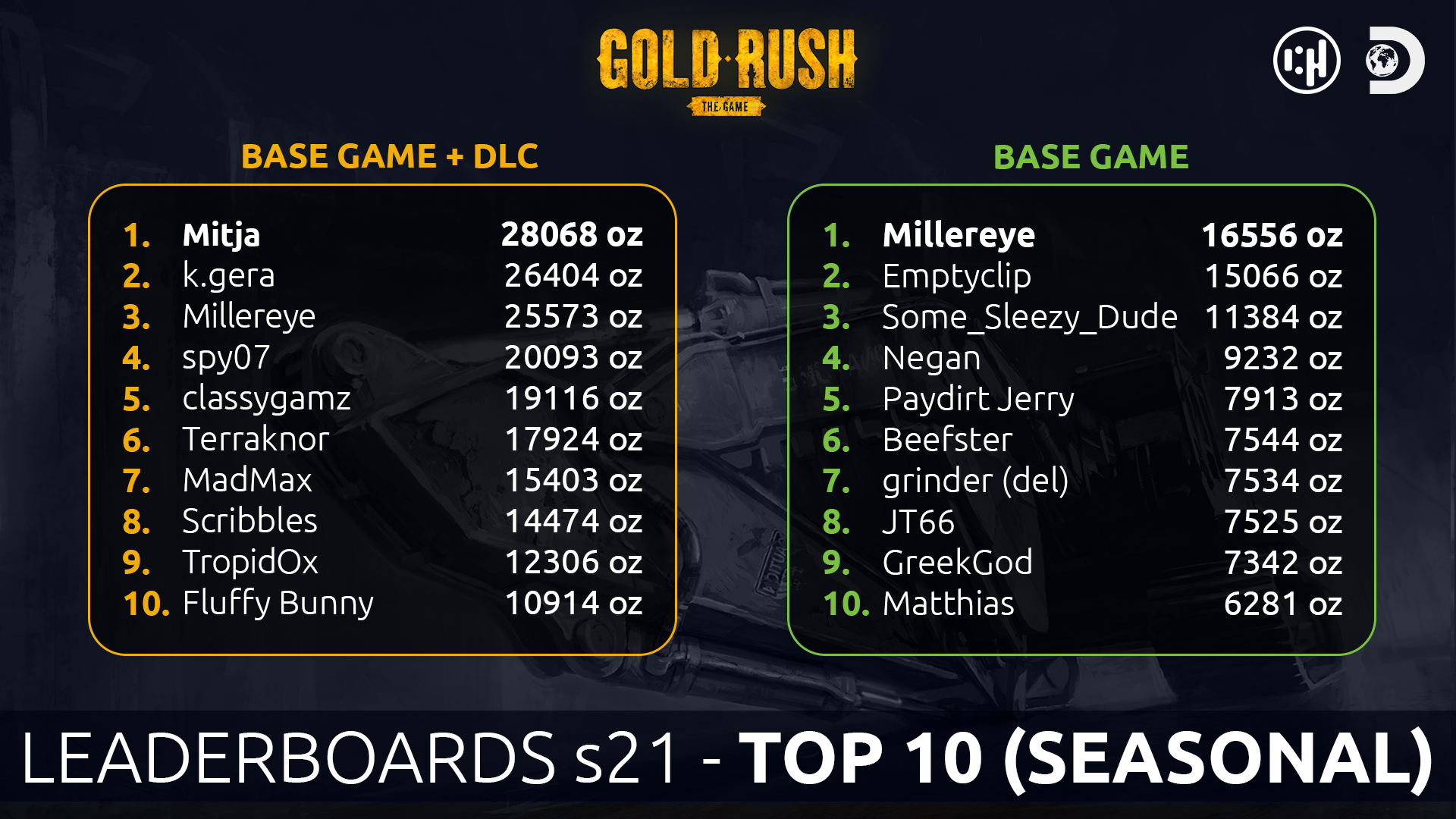 Previous season features present in Season 20 Leaderboards: - Every worker's level is set to maximum. - Blacksmith upgrades are maxed out (Blacksmith must be first visited before upgrades apply). - Nuggets from drilling are capped at 1400oz. - Each player's map seed is visible in Gold Map tab.