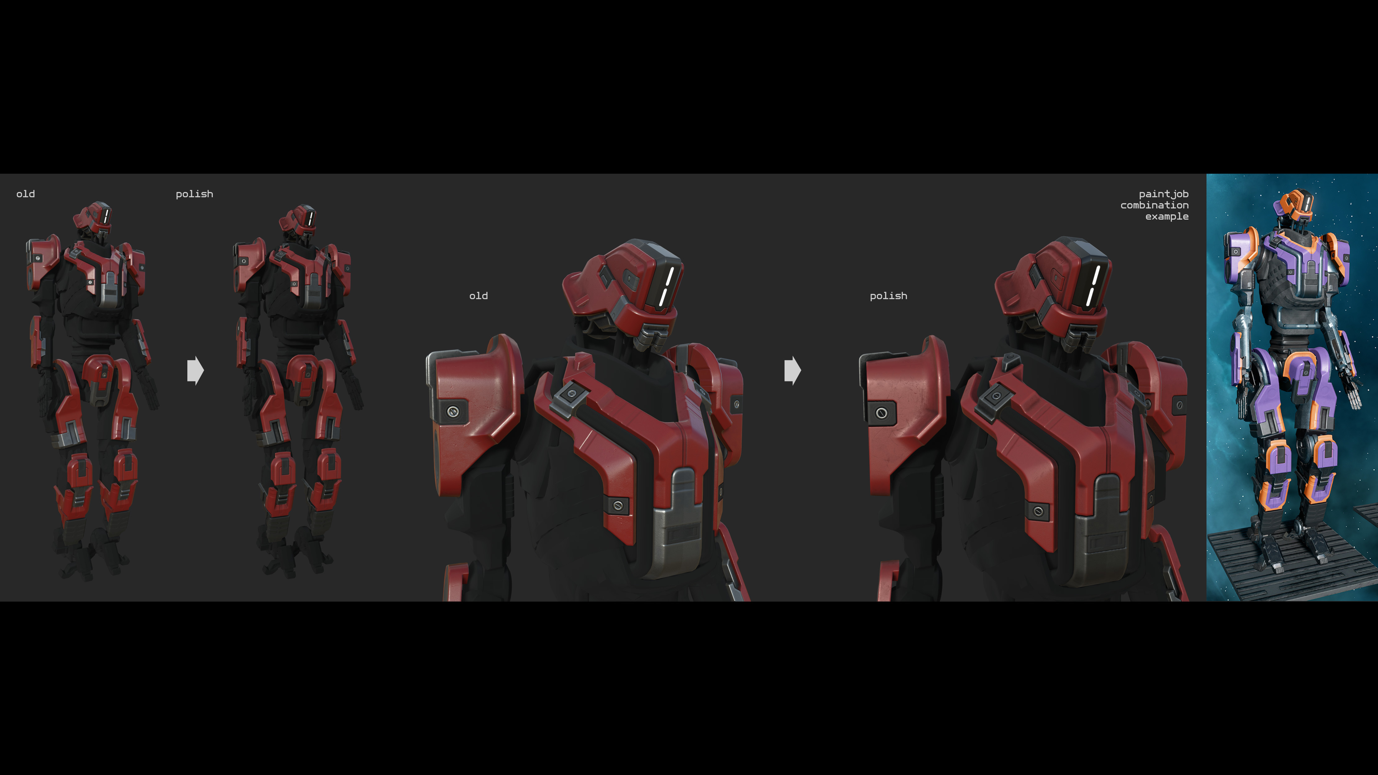 Customization UI design continues, edits to the inventory of equipment tab were made