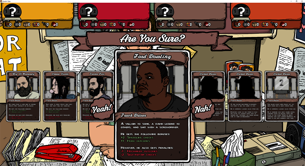 Since the initial Haulin’ Oats playable alpha, there was a lengthy and expected list of bugs that needed fixed. Everything from weird screen resolution issues, to offset mouse clicks, and even the inability to play the game except for roll dice. All of those, hopefully, have been fixed at this point. With all that out of the way, for now, the focus shifted to multiplayer, Steam, and adding in missing content.