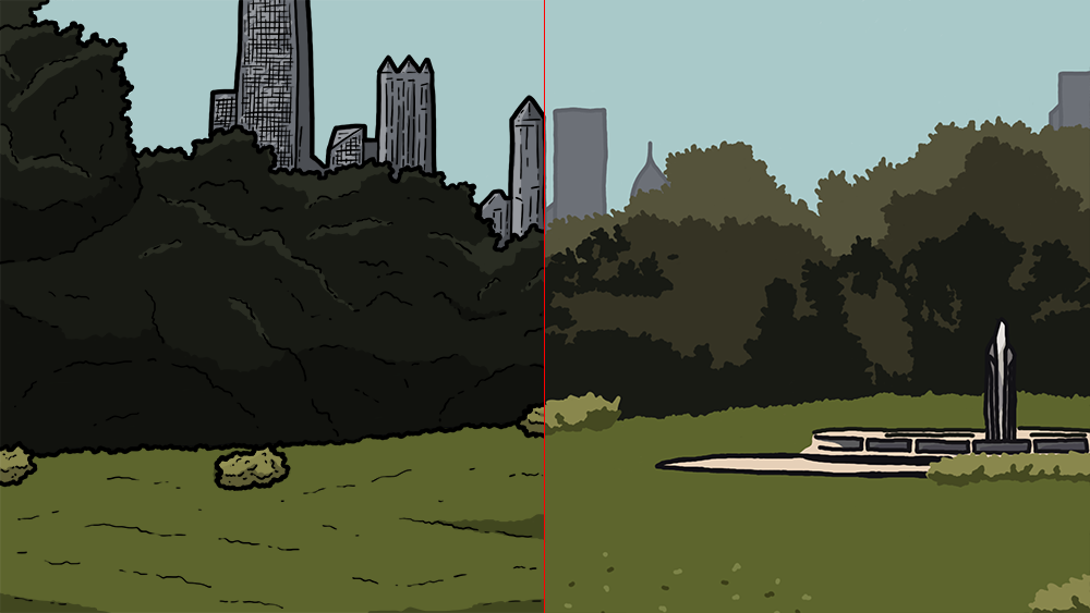 This week’s Dope Game progress was also all art. Still slogging away at environment and character upgrades. Here is an example of the new versus old Alpheus Park.