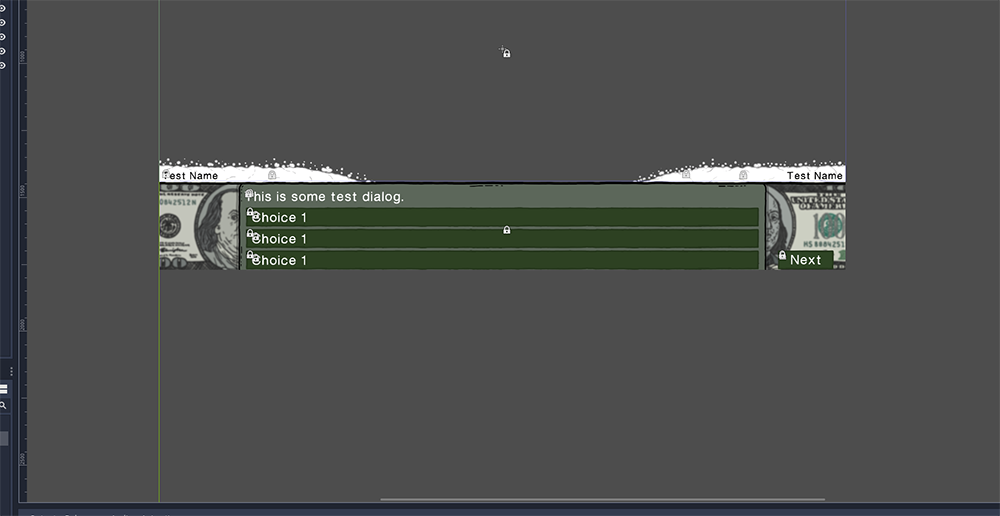The face-lift for the dialog interface will have a line of coke that slides into frame based on who is actually talking. Granted the player mostly just picks a response choice. Here we see what the full interface looks like with all the test data in place. Pretty fancy compared to the original.