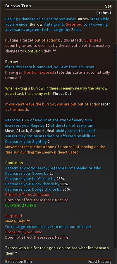 Changed the [ Lie in Ambush ] and [ Thrust Out ] to be activated only when [ Burrow ] is activated.