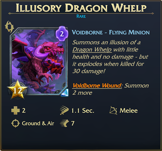 This change serves two functions. Firstly, we wanted to find a way where we could restore Illusory Cleaver’s 30 damage value, as the card just wasn’t seeing any effective usage beyond bridge grabbing since it was changed. Secondly, with the new Illusory Dragon releasing this patch, we were having difficulty tying it to the existing mechanic without it being a straight downgrade due to the small damage values.