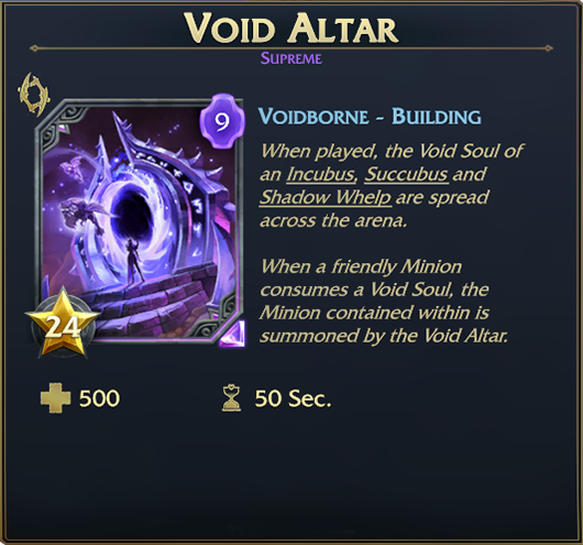 Void Altar was simply too slow of a card, offering no immediate value, making it very easy to push into as soon as the card was played. While it’s still a significant risk to play the building, the immediate soul should enable you to get the board presence required to stay in the game.