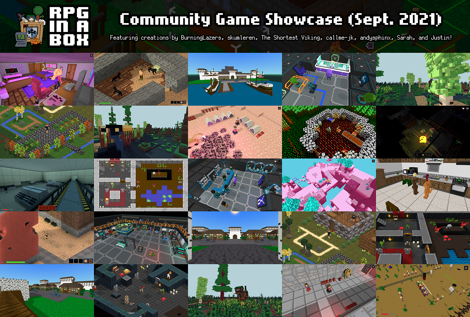Presenting the Community Game Showcase for September 2021! Thanks so much to those who contributed and to everyone creating a game with RPG in a Box! Your support and encouragement really means a lot. You can view the full-size image here: https://i.imgur.com/diGFHct.jpg