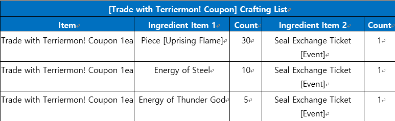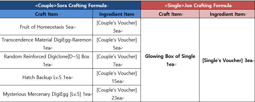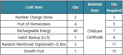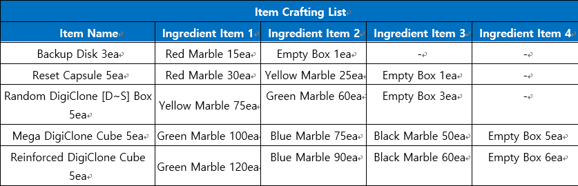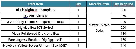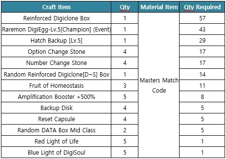 ◎ <Item Crafting>Digitamon Event Craft recipe information