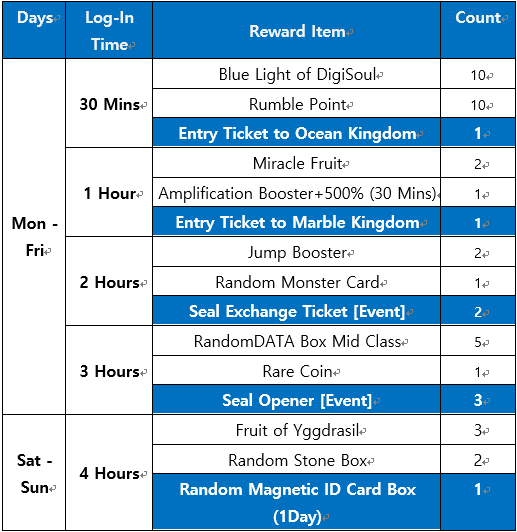 - Event Description 1. Log-in Time reward will be changed during the event period
