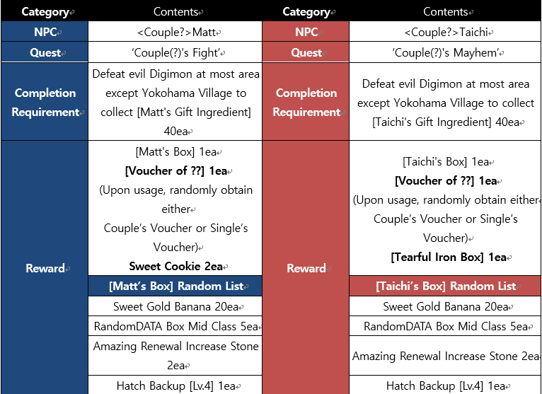 - Event Description 1. NPCs <Couple?>Matt, and <Couple?>Taichi will appear at DATS Center during the event period 2. Receive daily quests depending on which NPC was chosen in [Right now, you are…] Event