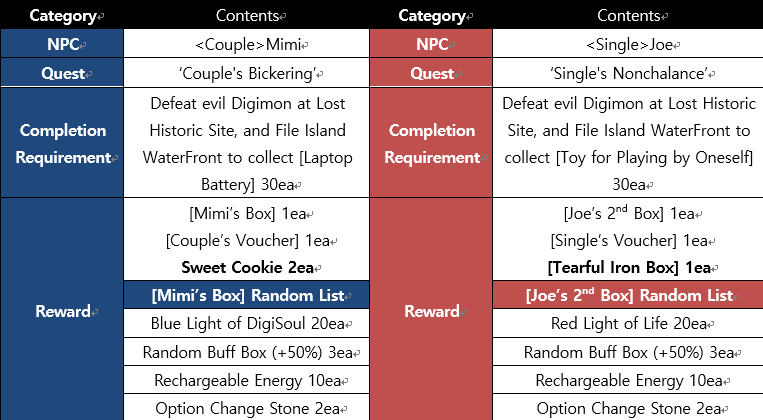 - Event Description 1. NPCs <Couple>Mimi, and <Single>Joe will appear at DATS Center during the event period 2. Receive daily quests depending on which NPC was chosen in [Right now, you are…] Event