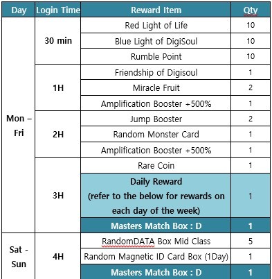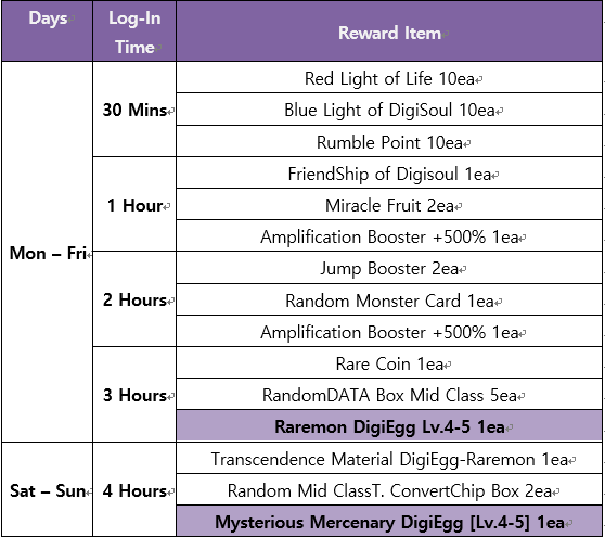 - Event Description 1. Change of Accumulated Log-In Time Reward during the event period