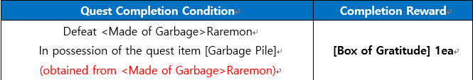※ If you are in possession of Quest Starting Item but do not see Daily Quest, try moving to a different channel or move to a different area on the map.