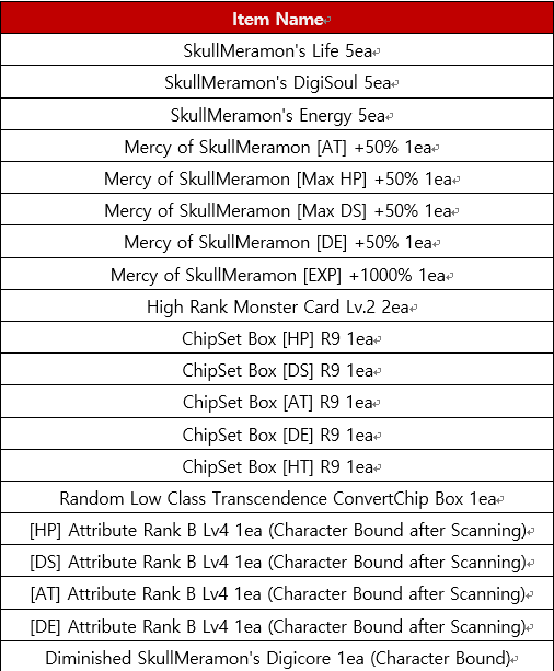 ● [Level-up Gift Box Lv.65(Omegamon), (Omegamon Zwart), (Omegamon Alter-S)] Item List