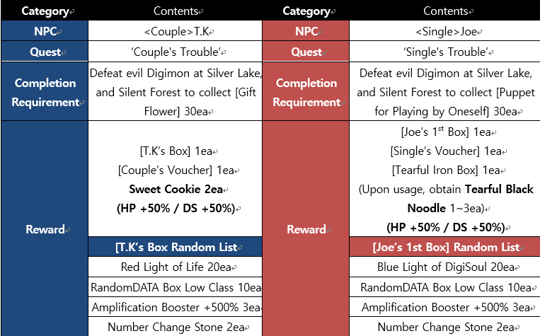 - Event Description 1. NPCs <Couple>T.K, and <Single>Joe will appear at DATS Center during the event period 2. Receive daily quests depending on which NPC was chosen in [Right now, you are…] Event