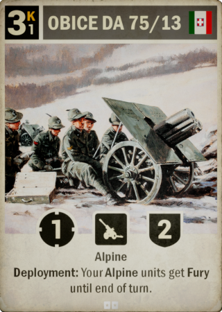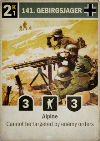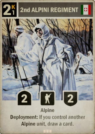 When an Alpine unit is deployed or added it gets +1+1 for each other Alpine unit you control.So the first one you play gets no bonus, the second one gets +1+1, the third one +2+2 and so on. This means that they can quickly snowball a basic unit into something very strong if left unchecked.